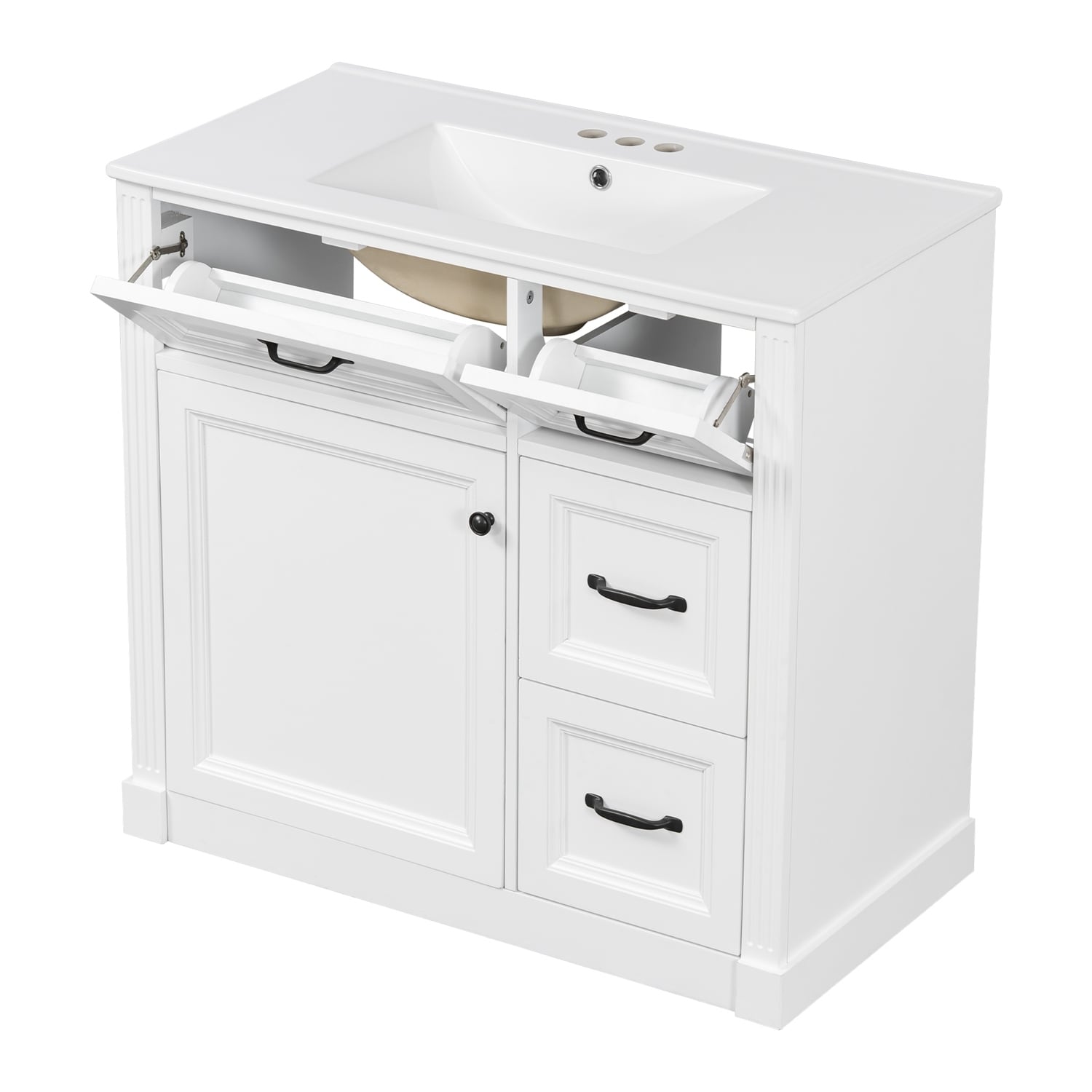 Bathroom Storage Cabinet with Tilt-Out Laundry Hamper, Adjustable Shelf, Door & Drawer Storage for Bathroom