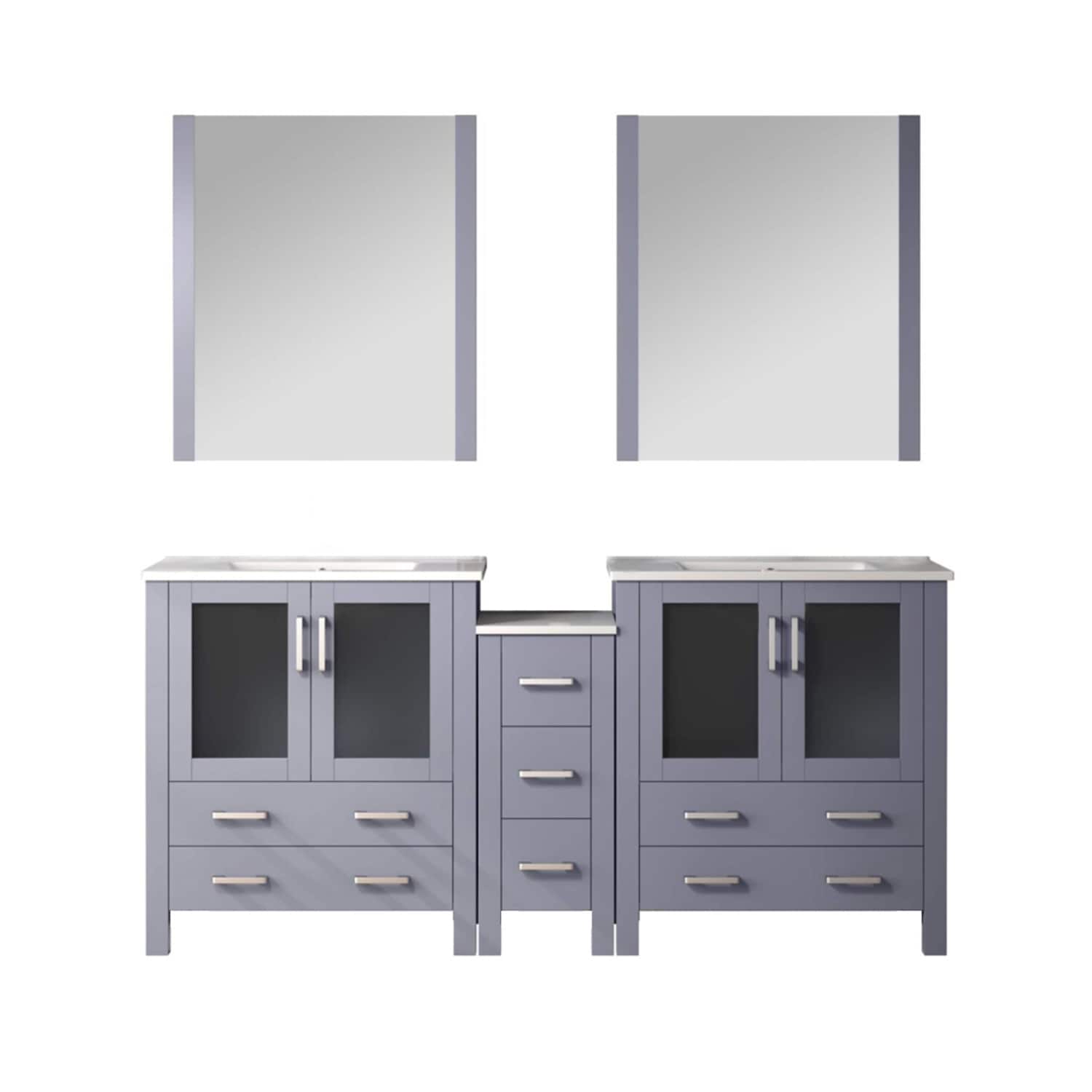 Dark Grey Double Bath Vanity 72 in. W x 18.25 in. D, with Side Cabinets, White Ceramic Top, and 28 in. Mirrors