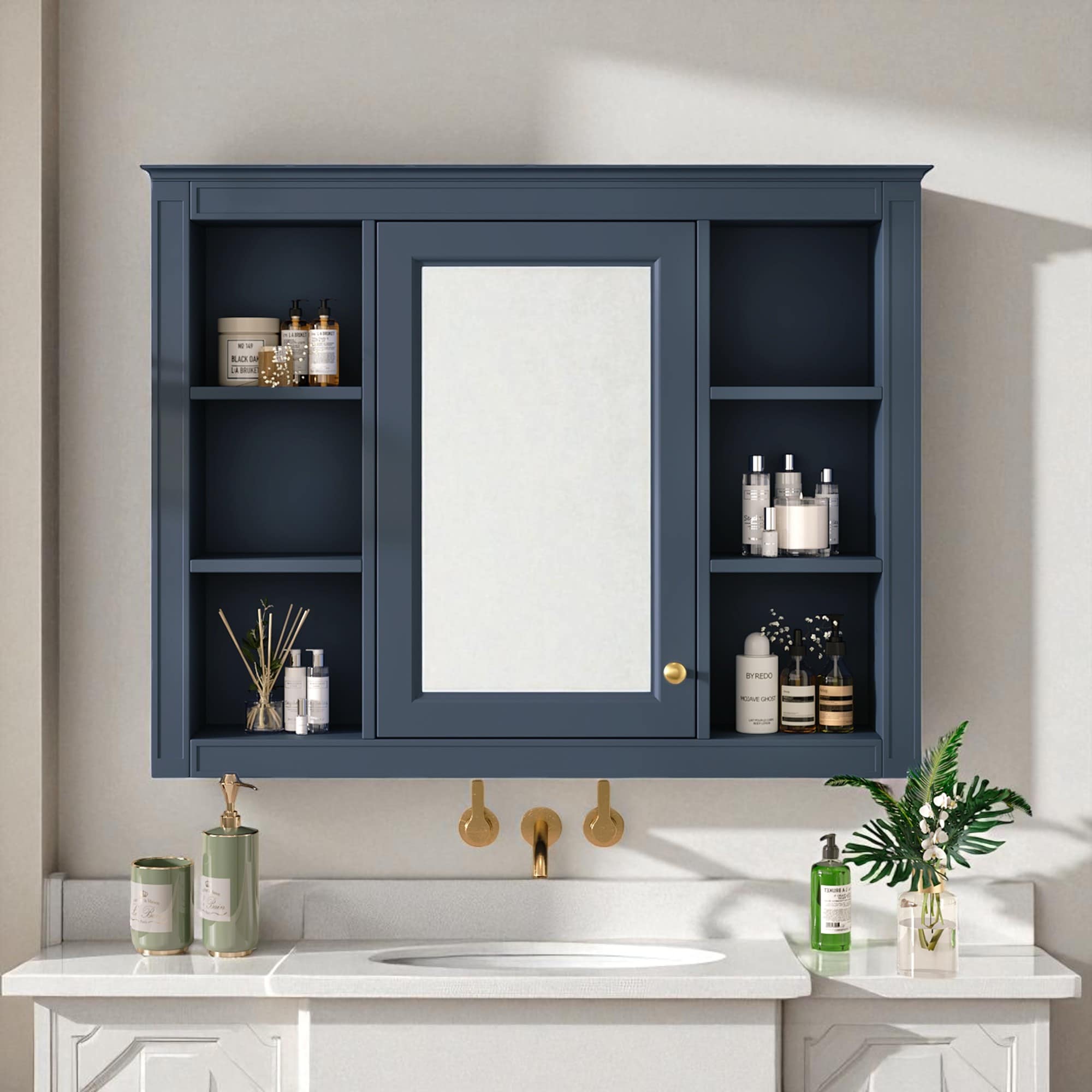 35'' x 27.5'' Medicine Cabinet, Wall Mounted Bathroom Storage Cabinet with Mirror, Wall Cabinet with Concealed & Open Shelves