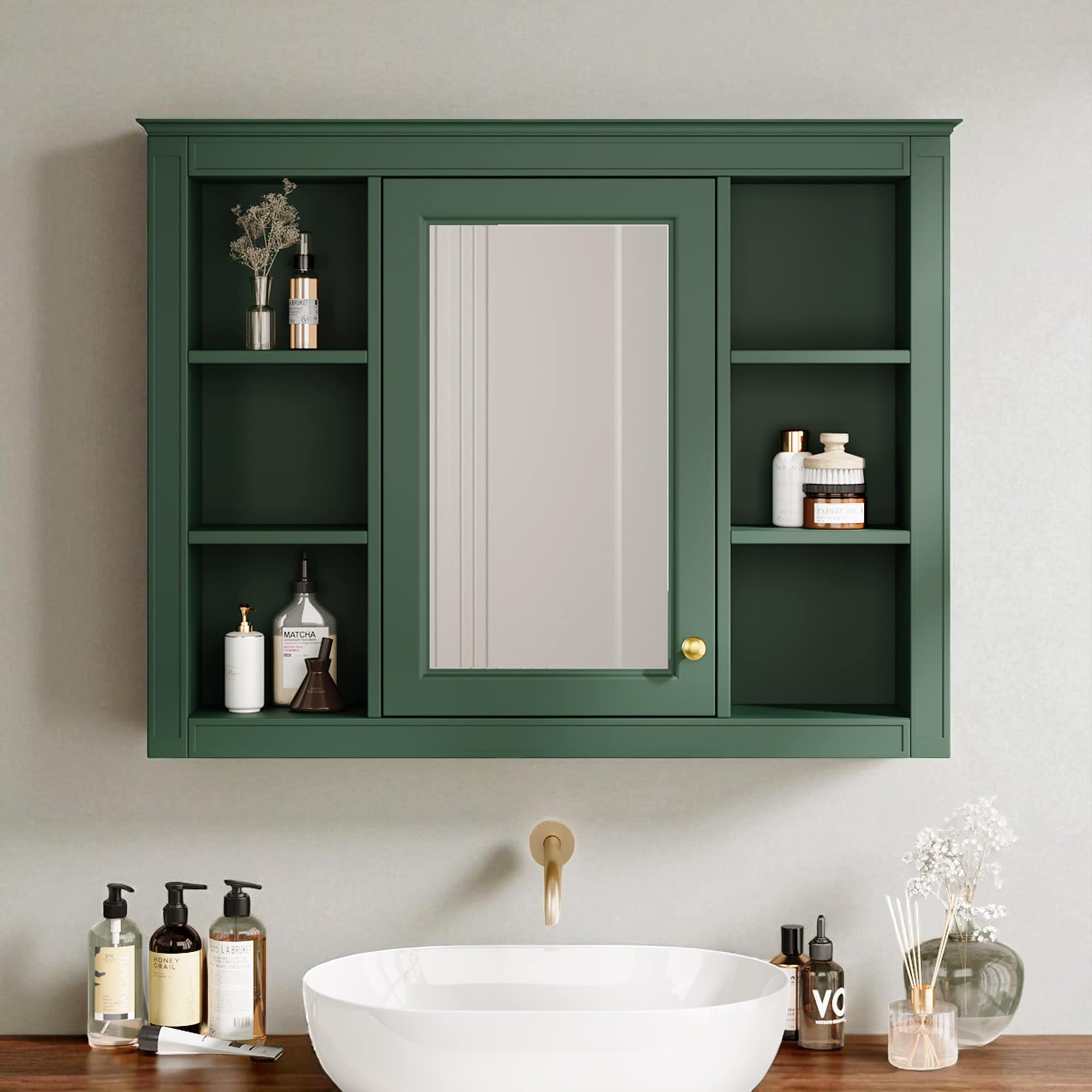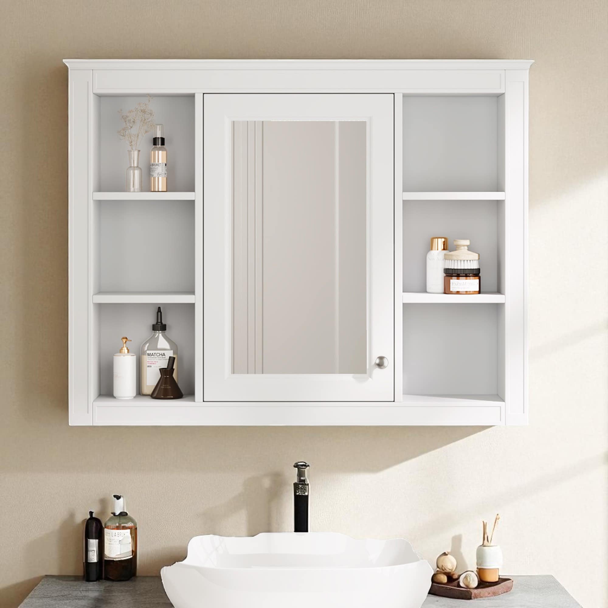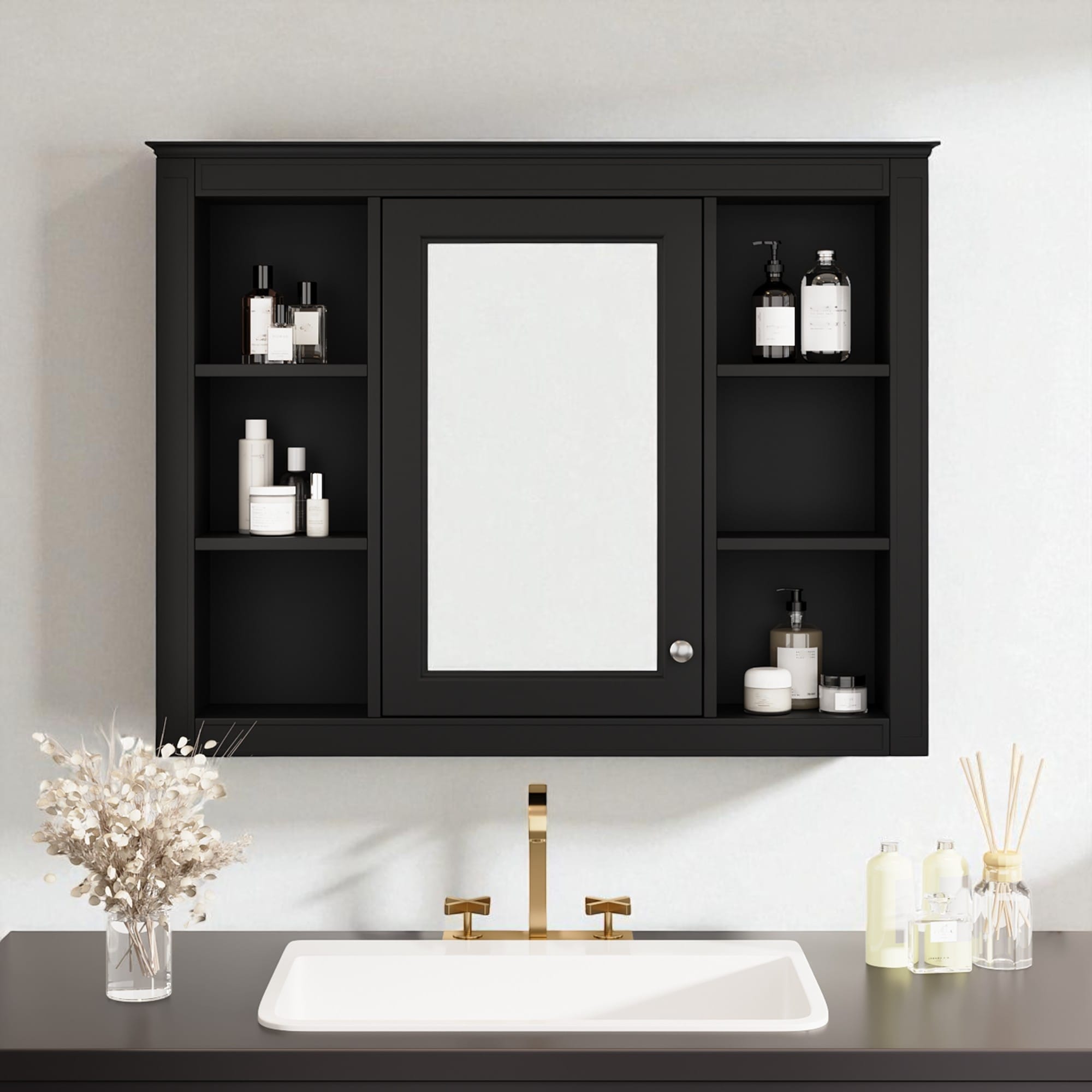 35'' x 27.5'' Medicine Cabinet, Wall Mounted Bathroom Storage Cabinet with Mirror, Wall Cabinet with Concealed & Open Shelves