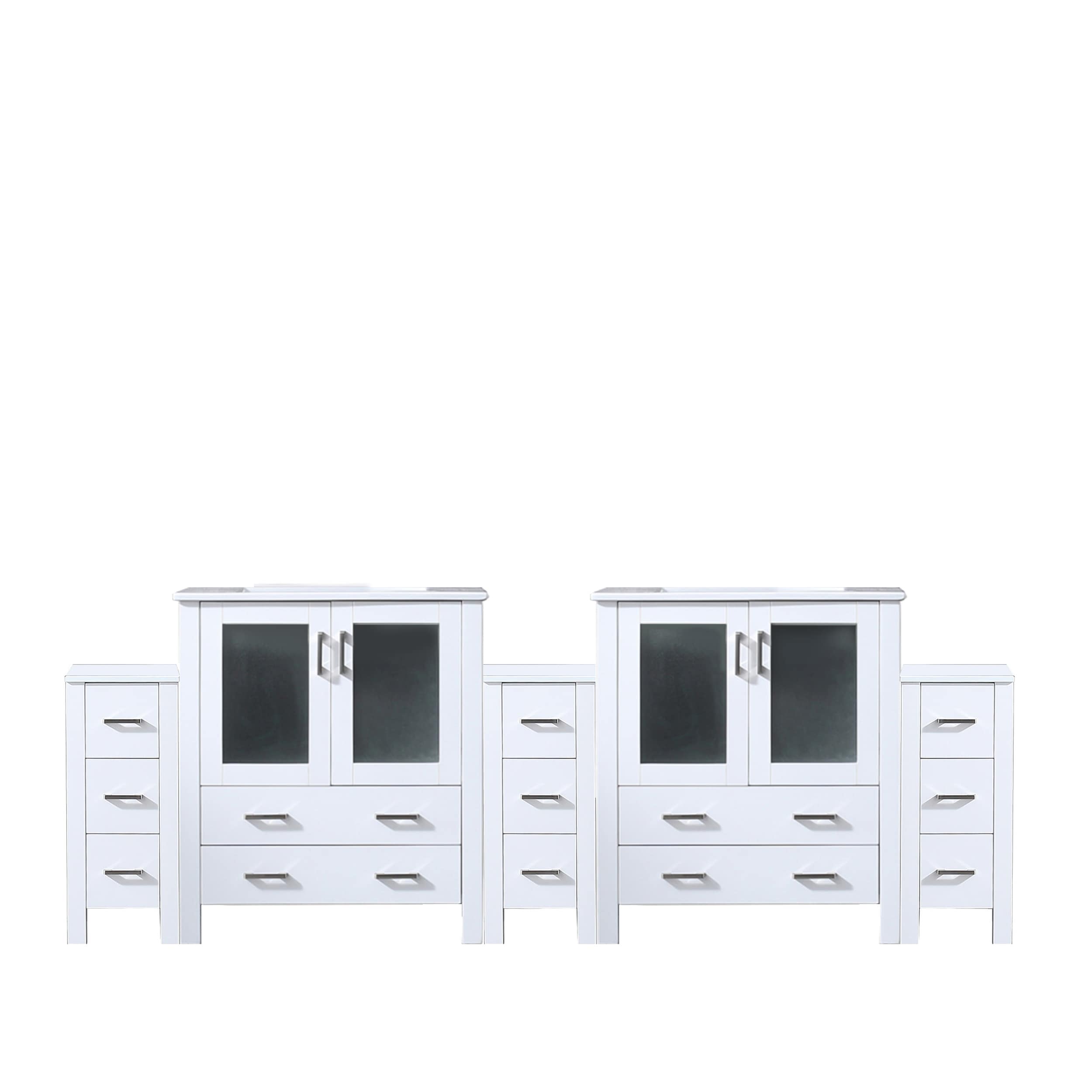 White Double Bath Vanity 96 in. W x 18.25 in. D, with Side Cabinets, and White Ceramic Top