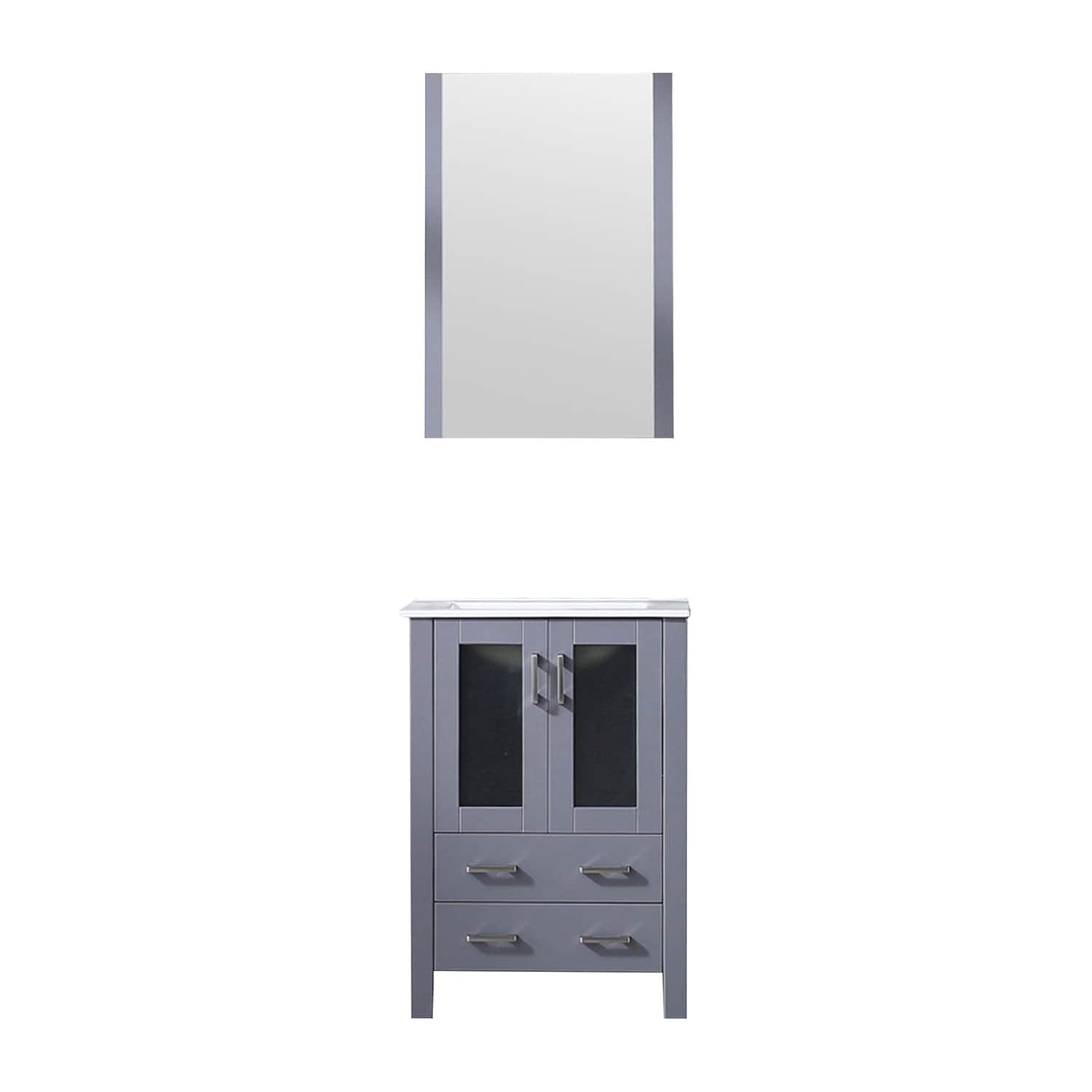 Dark Grey Bath Vanity 24 in. W x 18.25 in. D, White Ceramic Top, and 22 in. Mirror