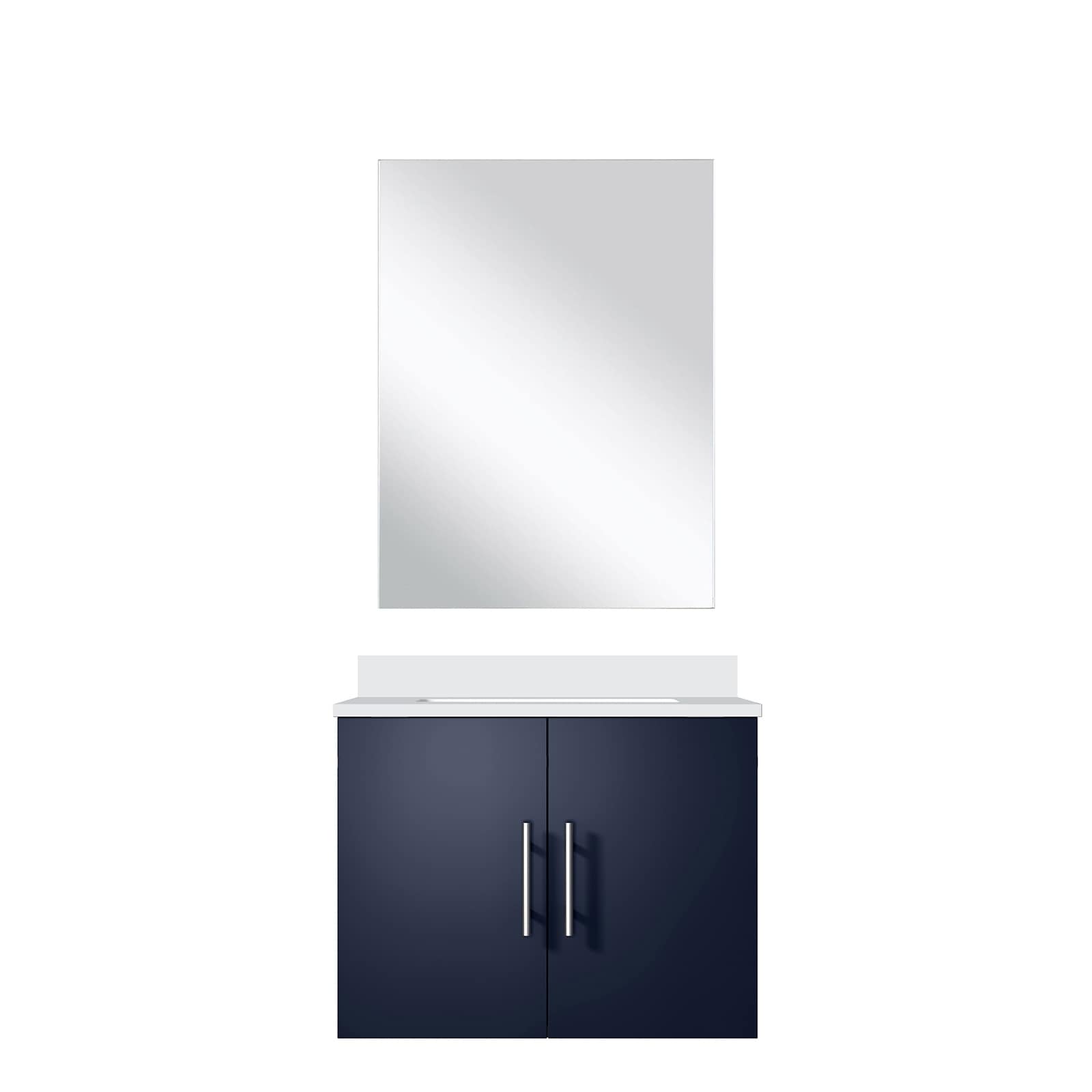 Navy Blue Single Bath Vanity 24 in. W x 22 in. D, White Quartz Countertop and 18 in. Mirror