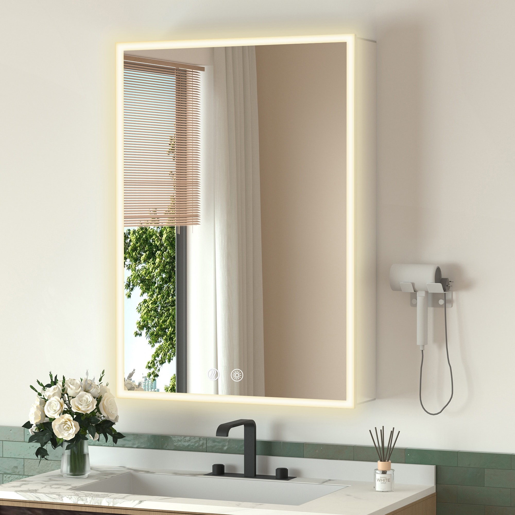 Yulika LED Medicine Mirror Cabinet with Sockets, Anti-Fog, 3-Color Lighting, Fully Mirrored and Hidden Hinges