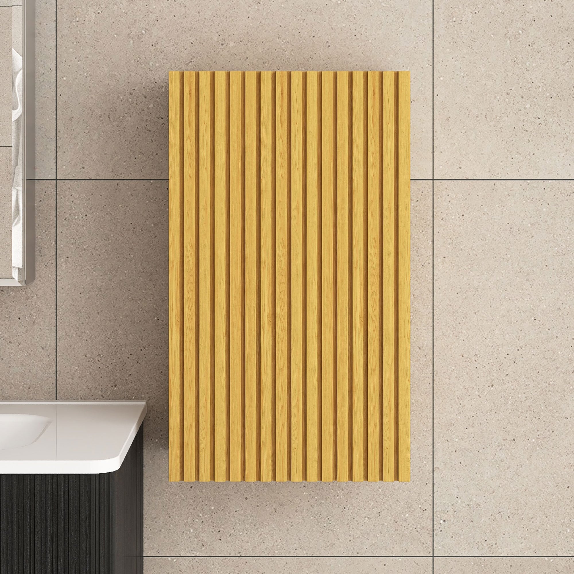 Wall Mounted Bathroom Cabinet in Oak with Door and Shelves