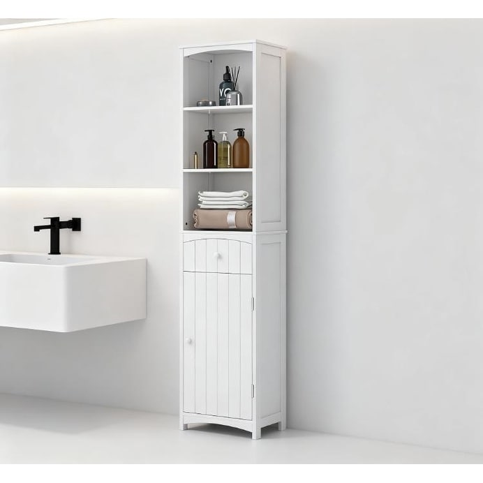 Open and Closed Storage Unit Bathroom Cabinet with Drawer, Kitchen Corner Pantry Cupboard, Linen Tower Tall Side Cabinet