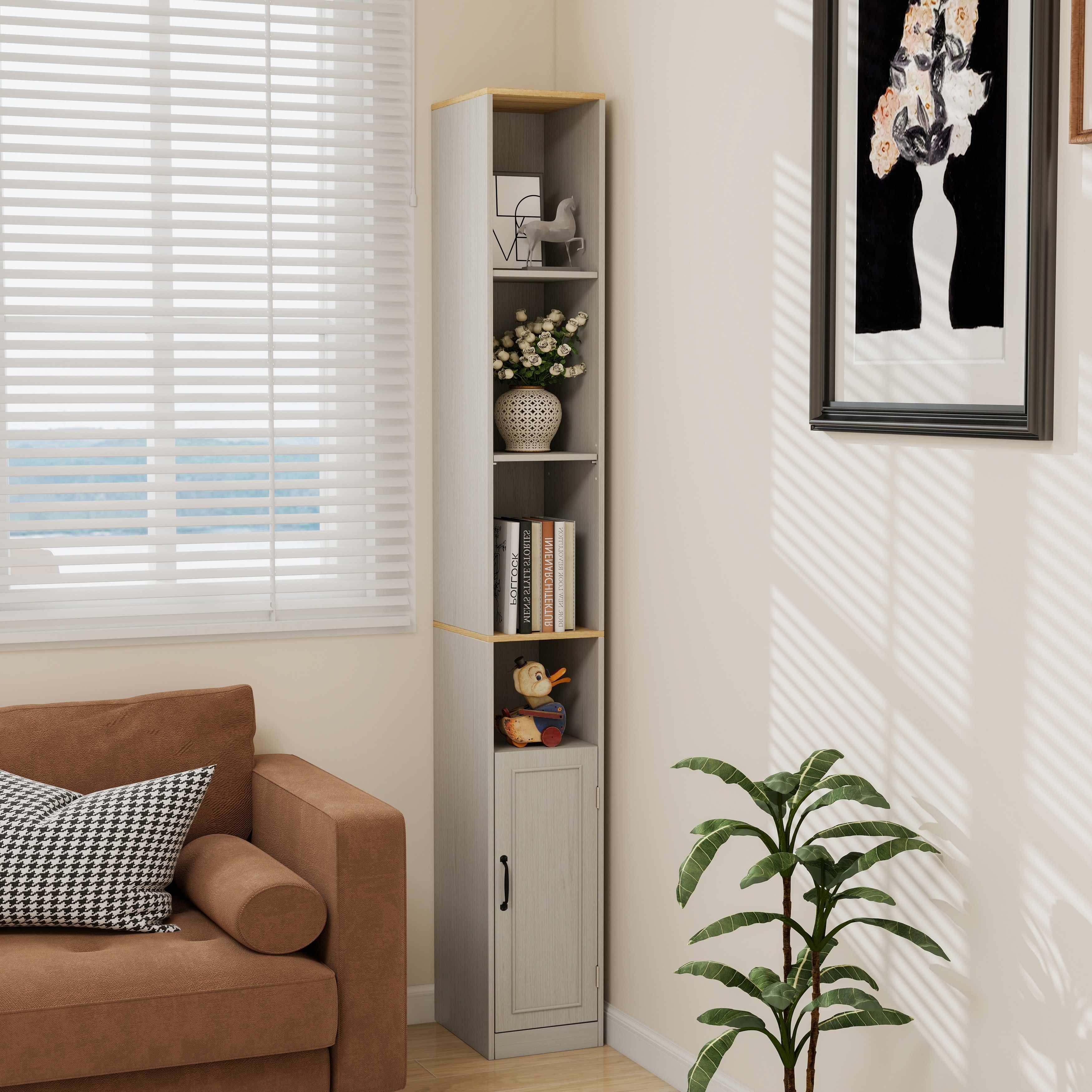 72" Tall Narrow Storage Cabinet, 6-Tier Freestanding Display Bookcase, Linen Tower Bathroom Side Cabinet with Adjustable Shelf
