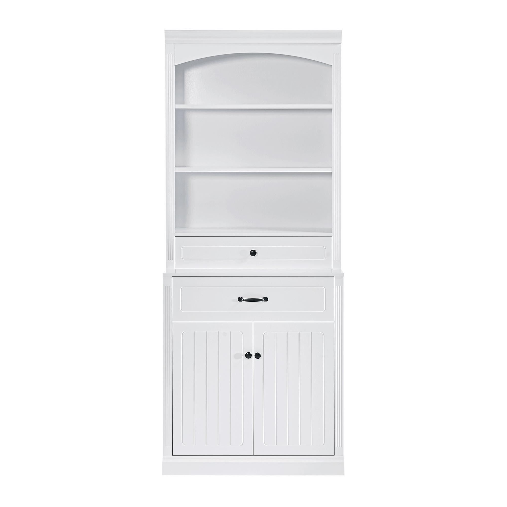 Linen Cabinet 68" H, Three Shelves, Four Drawers and Metal handles, White