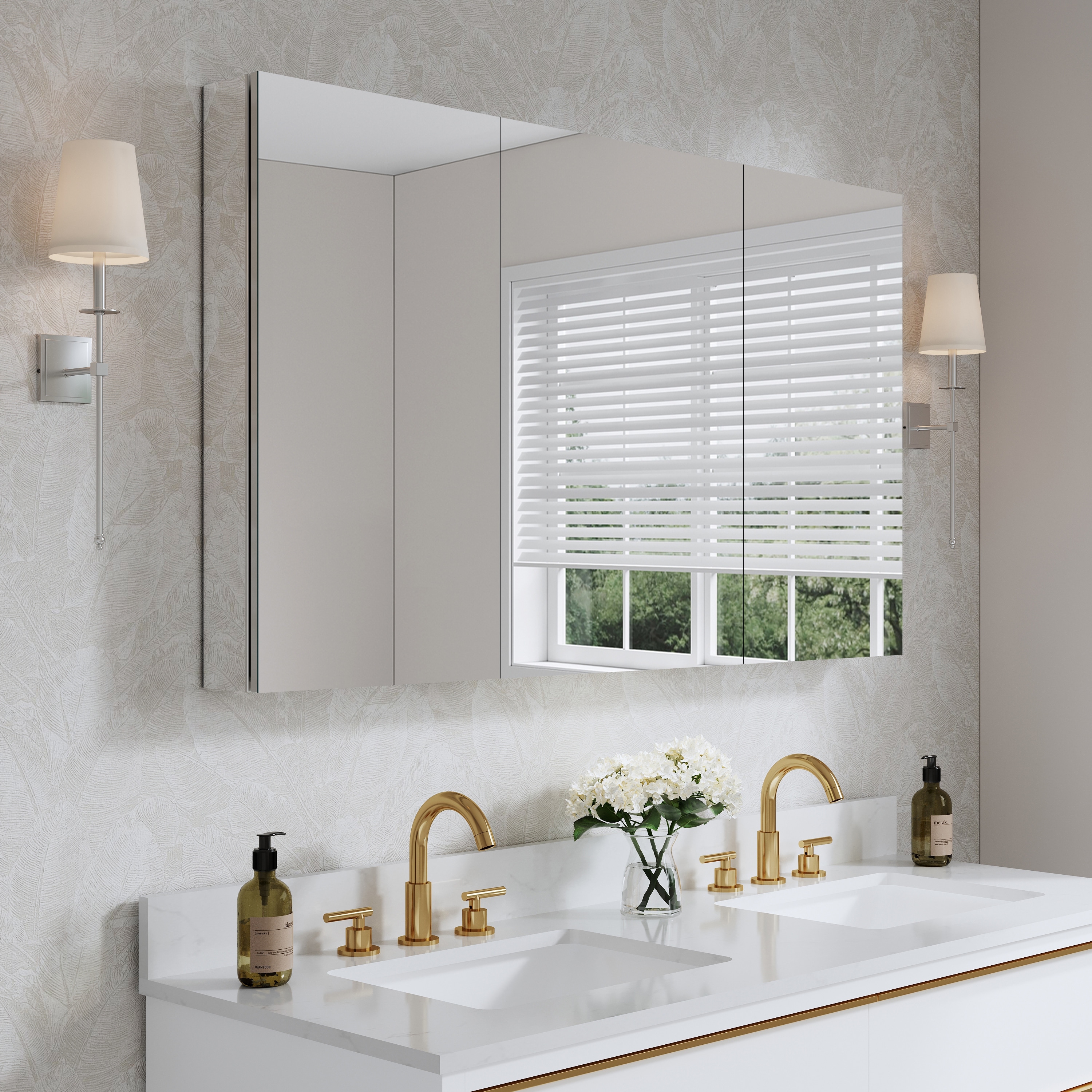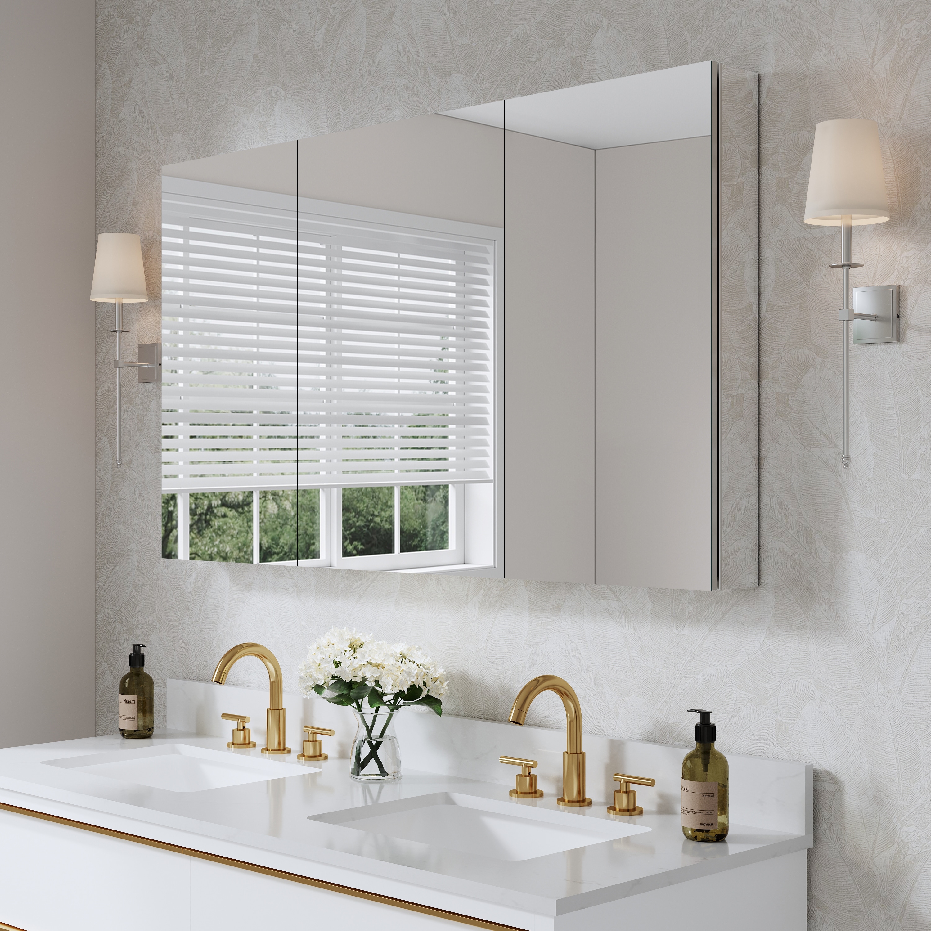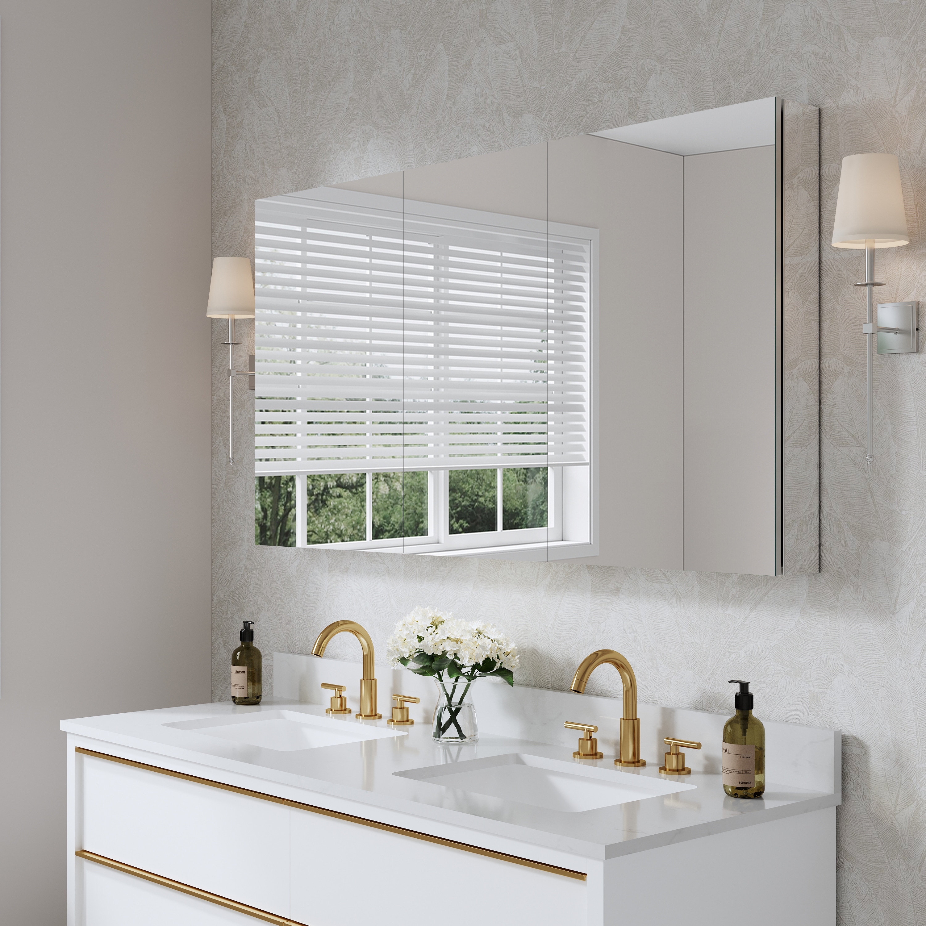 52''/56''W X 30''H Recessed Or Surface Wall Mount Bathroom Medicine Cabinet With Adjustable Glass Shelves