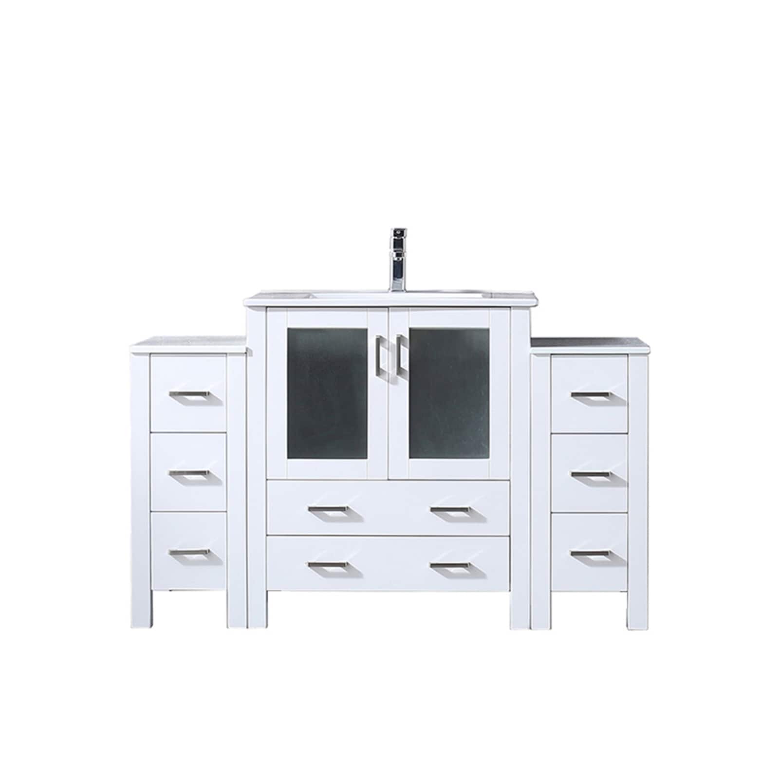 White Single Bath Vanity 54 in. W x 18.25 in. D, with Side Cabinets, White Ceramic Top, and Faucet Set