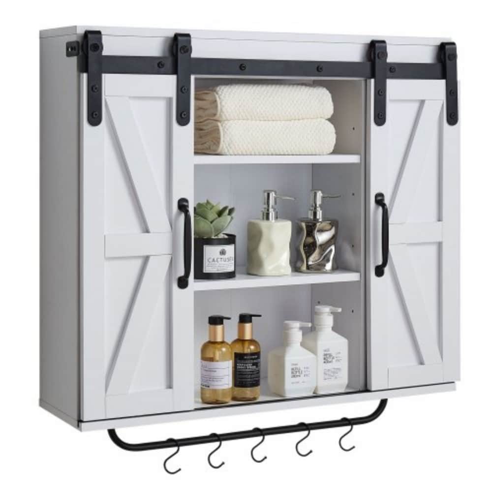 White Bathroom Wall Cabinet with Adjustable Shelves and Multi-Layer Storage for Small Space - 31” x 9” x 30”