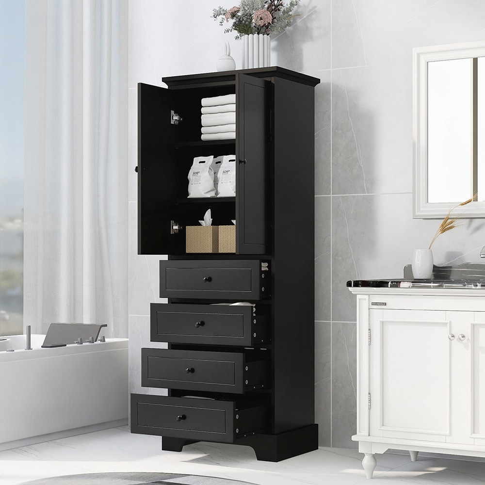 Storage Cabinet with 2 Doors and 4 Drawers for Bathroom