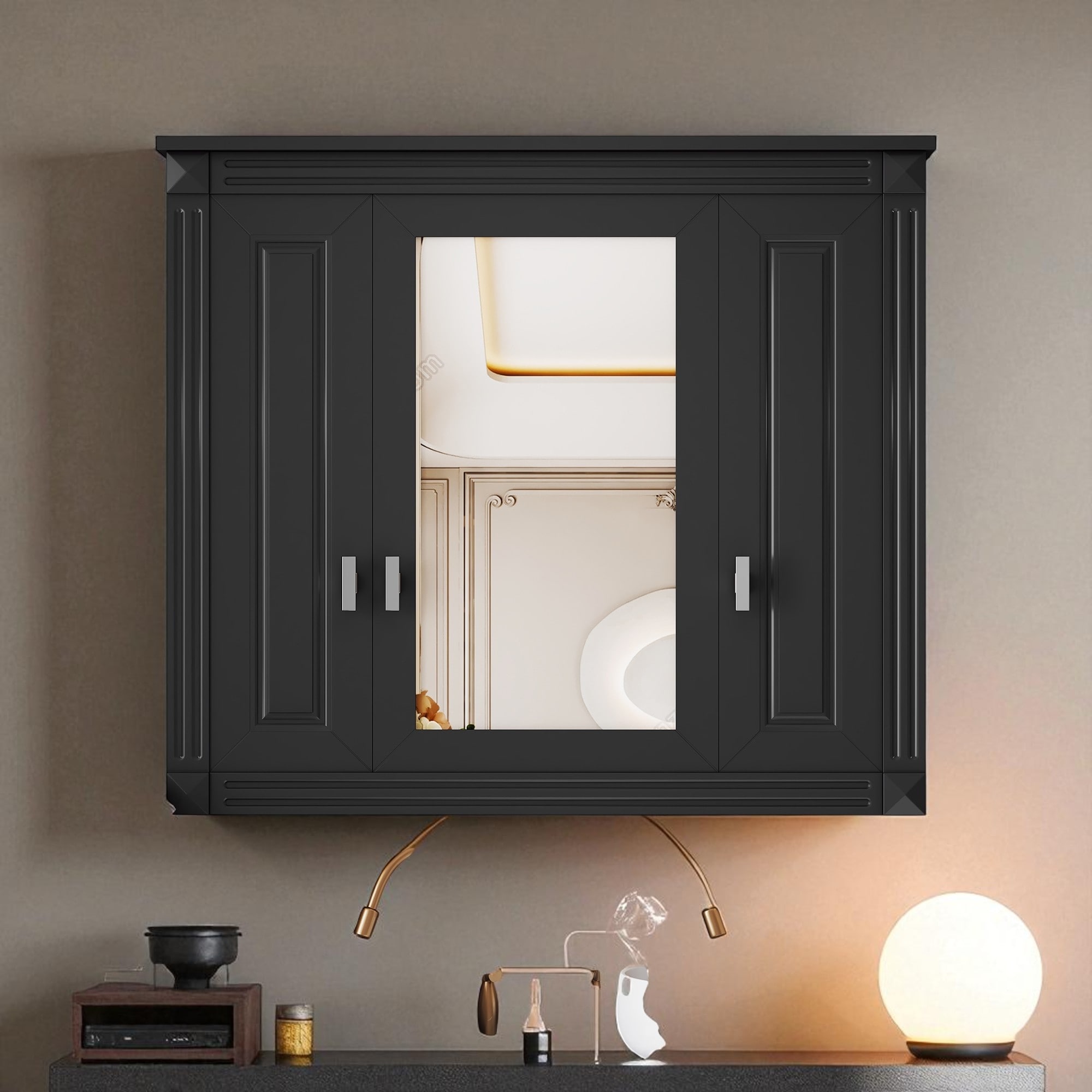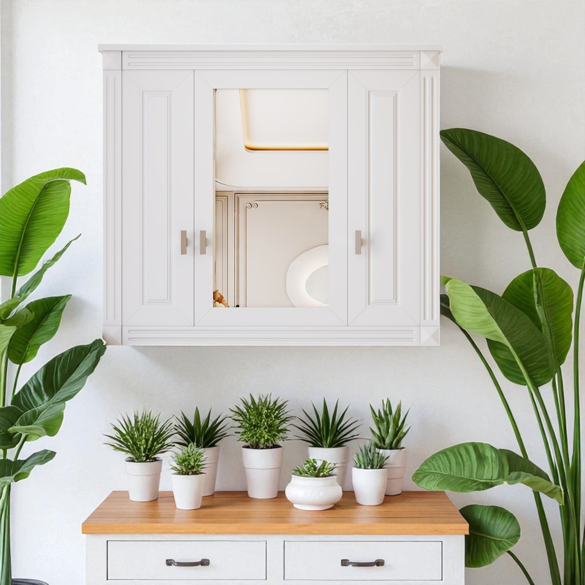 Bathroom Wall Cabinet with Mirror,Wall Mounted Medicine Cabinet with 3 Doors & Adjustable Shelves,Over Toilet Storage Organizer