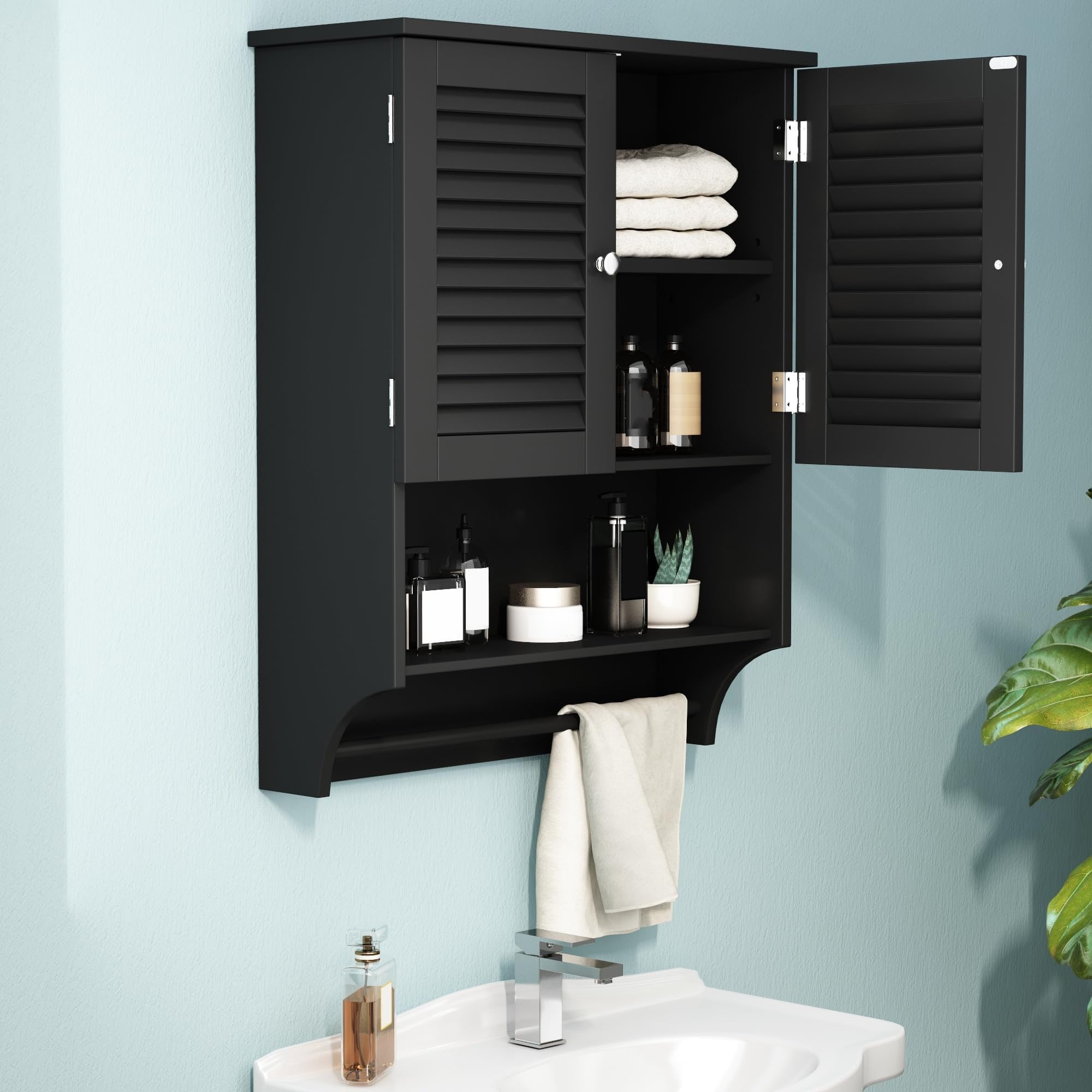 Louvered Door Wall Medicine Cabinets with Towel Bar and Storage Unit