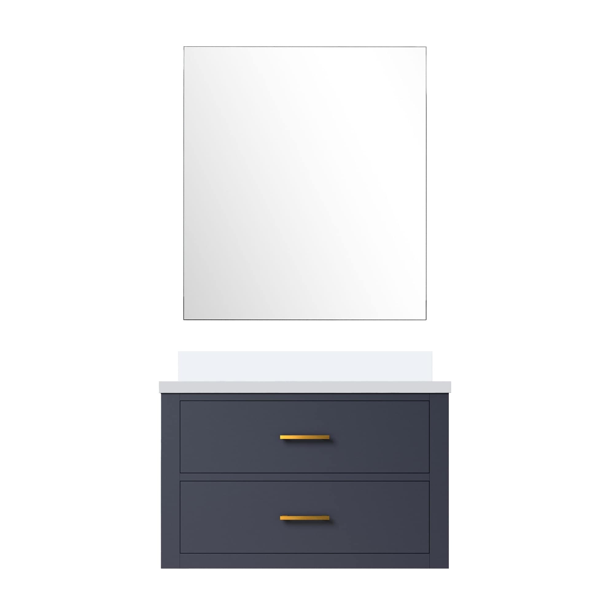 Dark Grey Bath Vanity 30 in. W x 22 in. D, White Quartz Top, and 30 in. LED Mirror