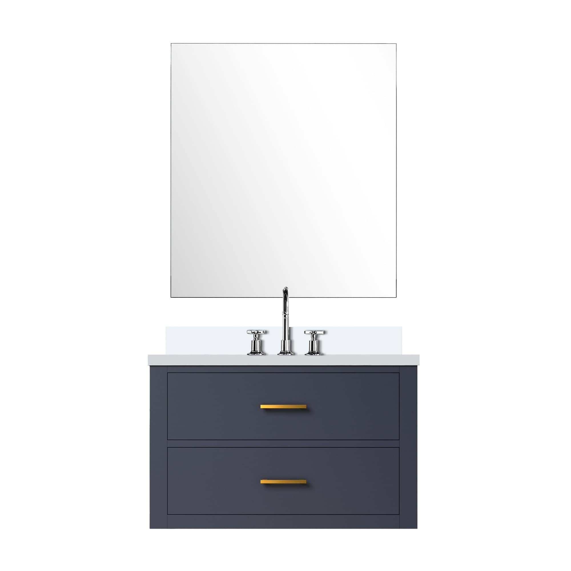Blue Single Bath Vanity 30 in. W x 22 in. D, Cultured Marble Countertop, 28 in. Mirror and Faucet Set