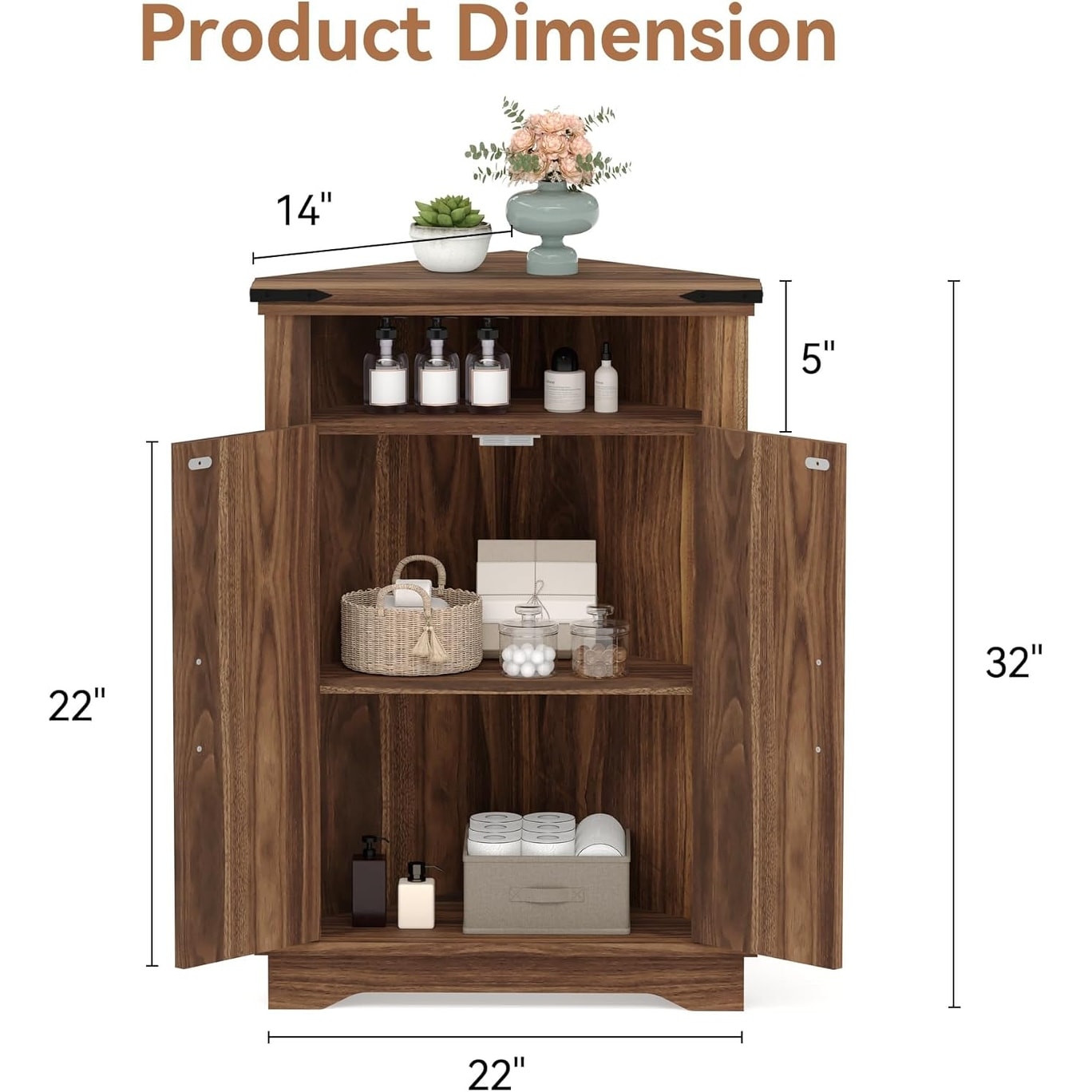 Corner Bathroom Cabinet, Farmhouse Small Corner Cabinet with Barn Door & Adjustable Shelf, Storage Cabinets for Bathroom