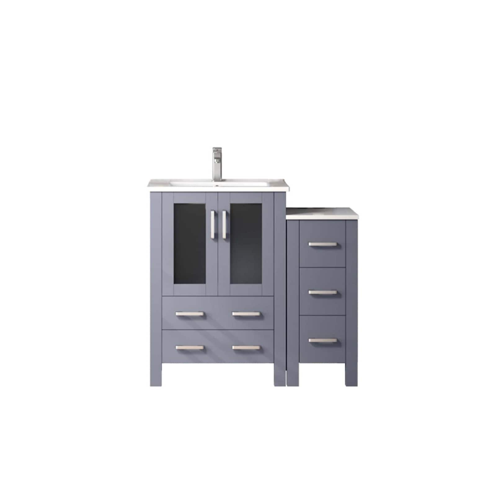 Dark Grey Single Bath Vanity 36 in. W x 18.25 in. D, with Side Cabinet, White Ceramic Top, and Faucet Set