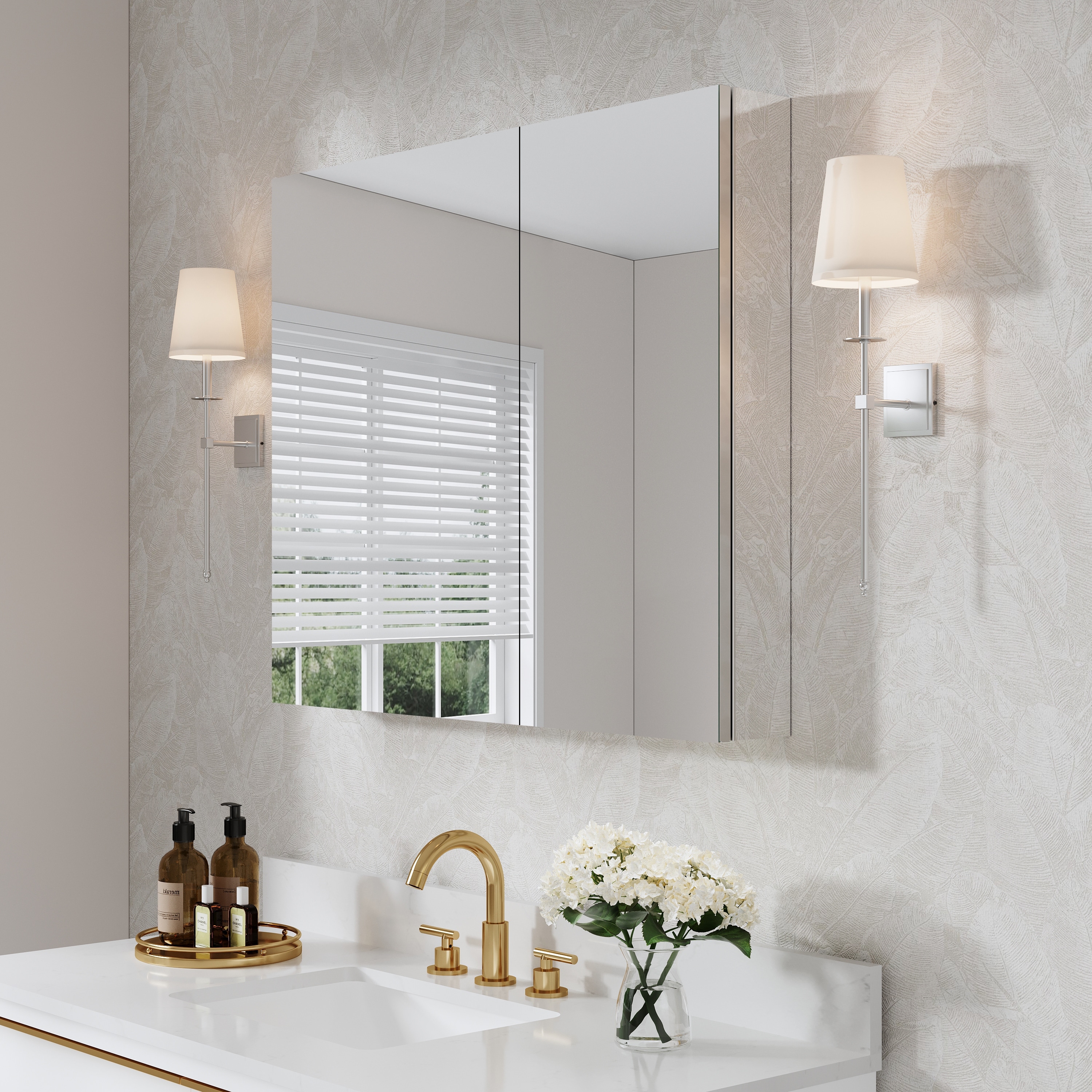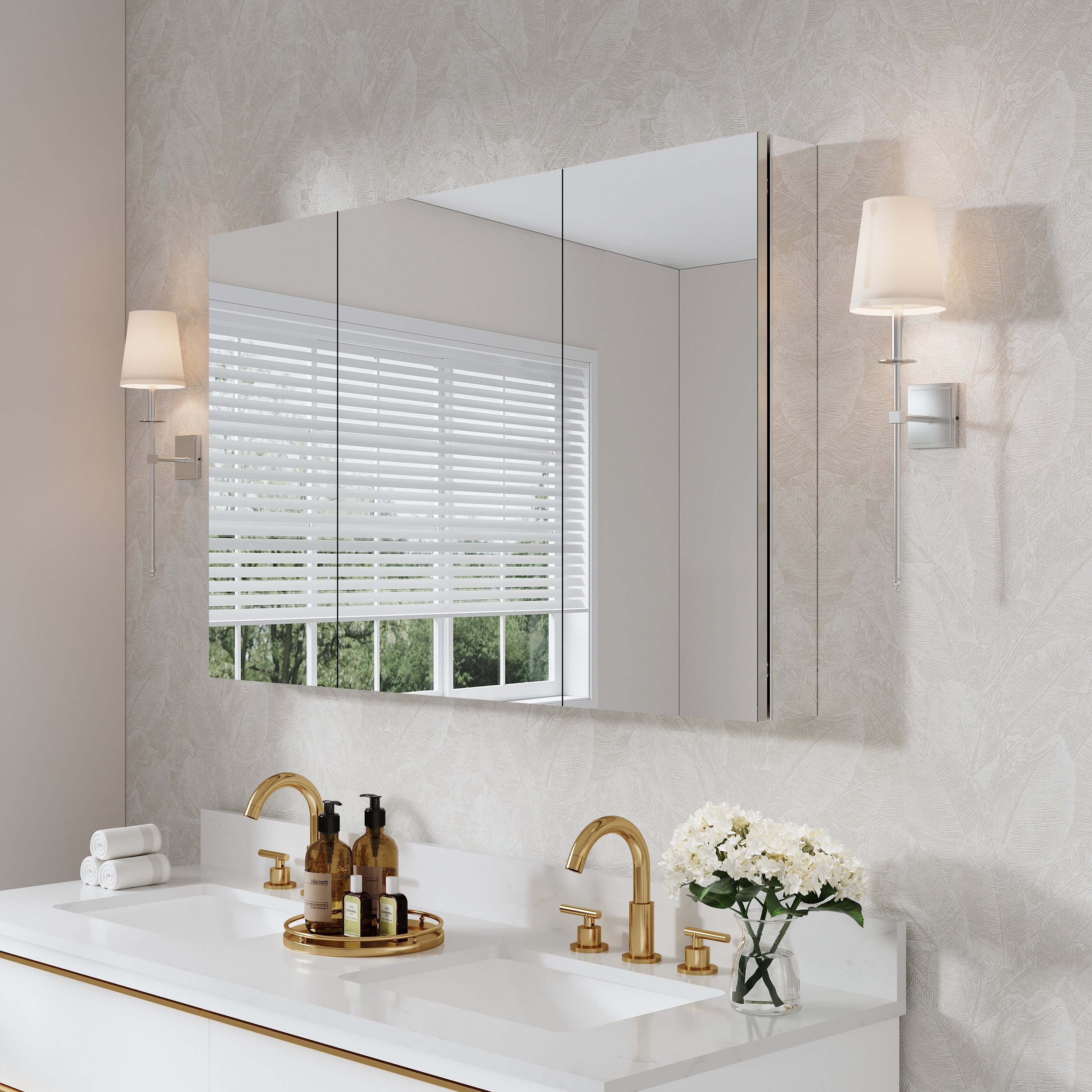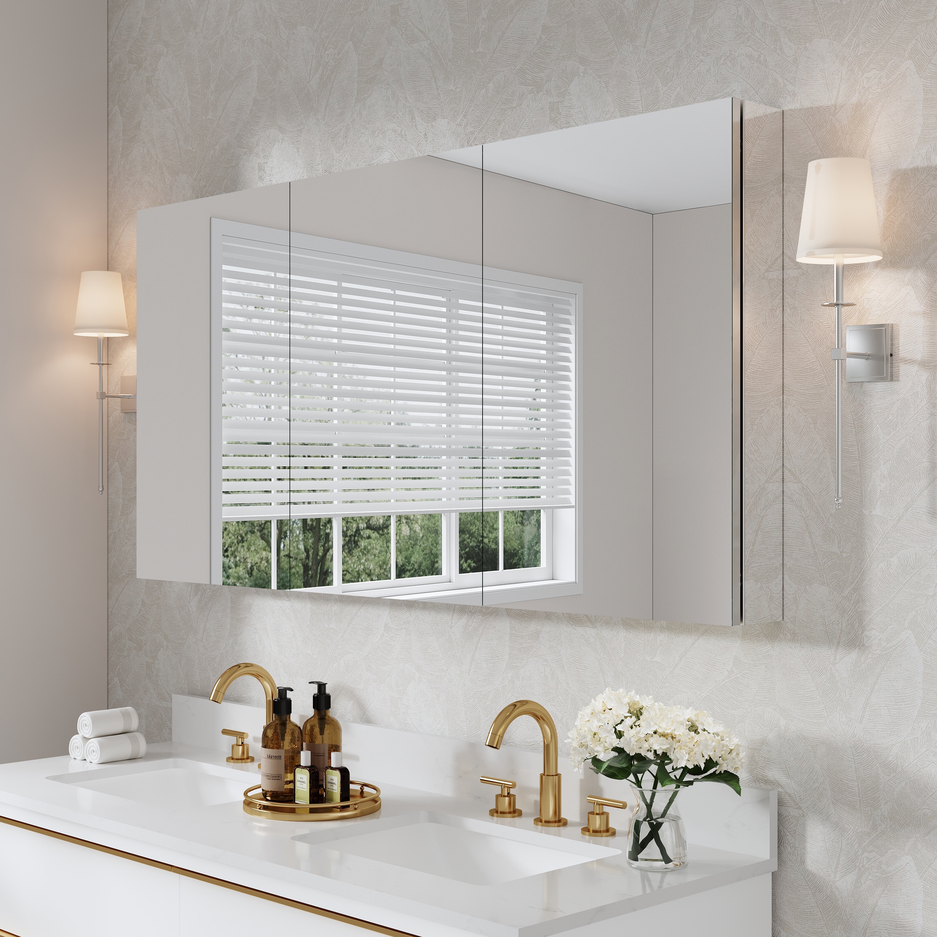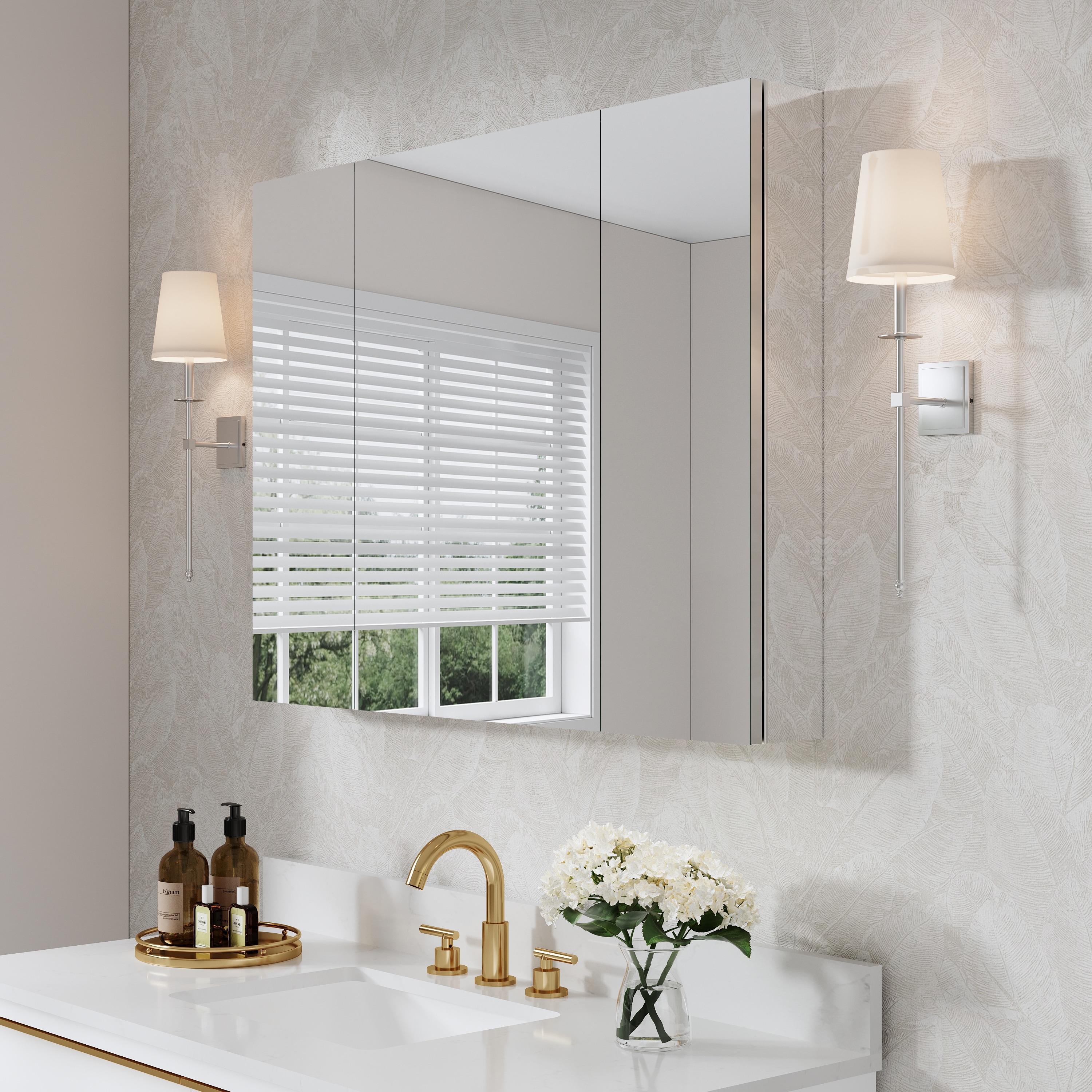 Recessed or Surface Wall Mount Bathroom Medicine Cabinet With Adjustable Glass Shelves