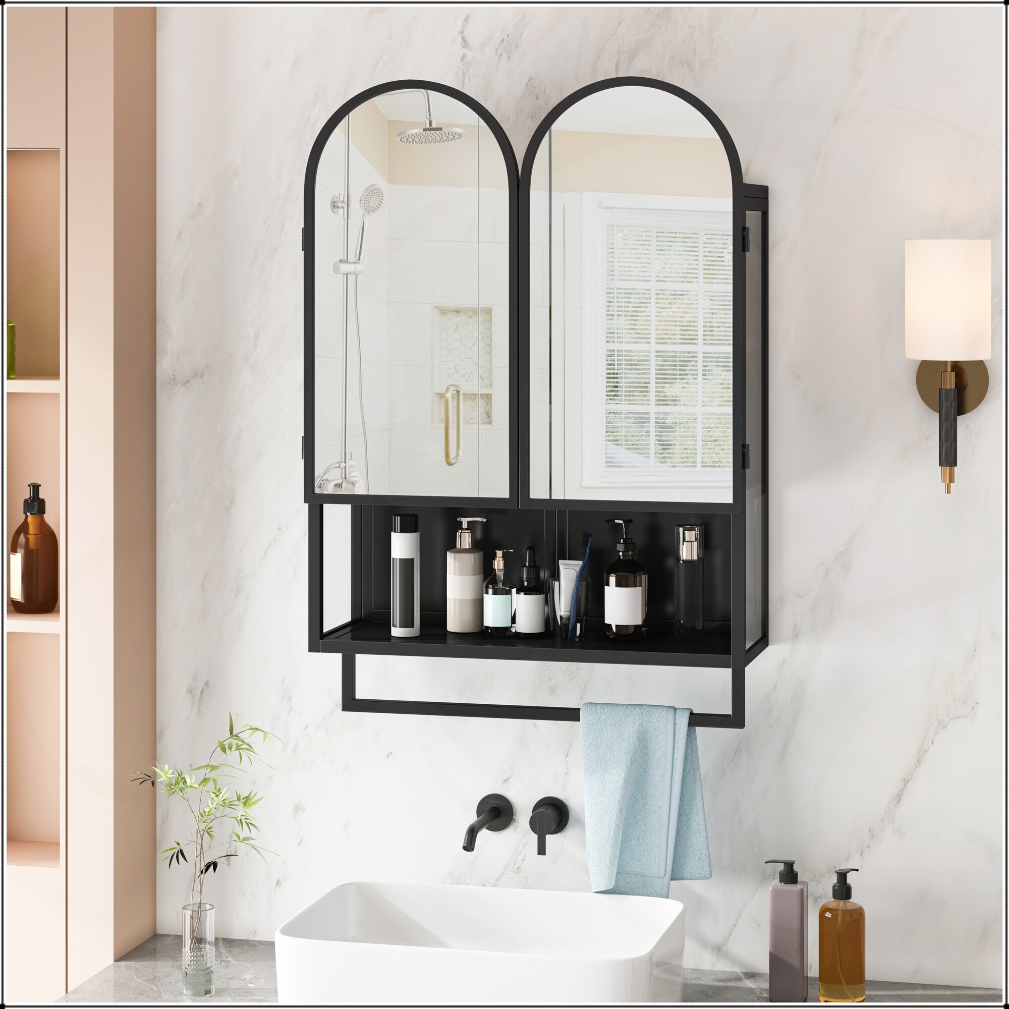 23.62" Modern Double-Arched 2 Doors Mirror Cabinet