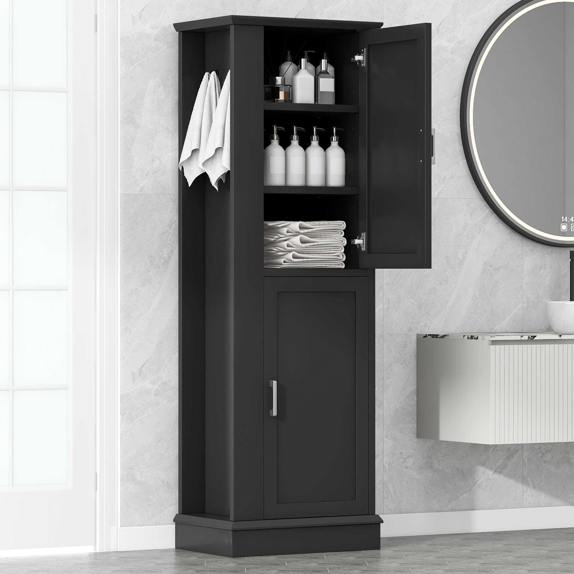 Modern Tall Bathroom Cabinet, Freestanding Storage Cabinet with Hooks and Adjustable Shelves, for Bathroom, White