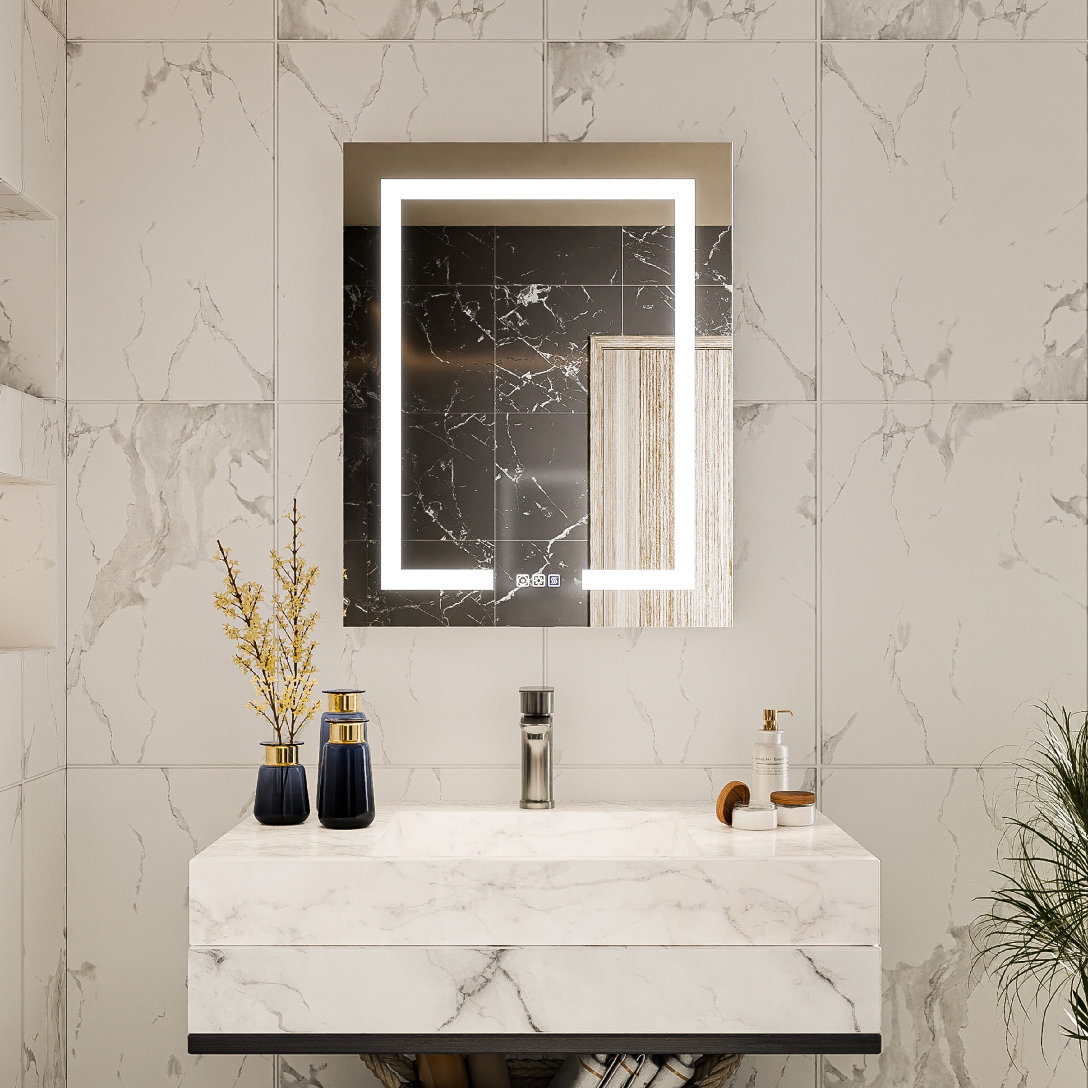Modland 20/24 Inch LED Lighted Medicine Cabinet with Mirror Aluminum,Adjustable Shelves