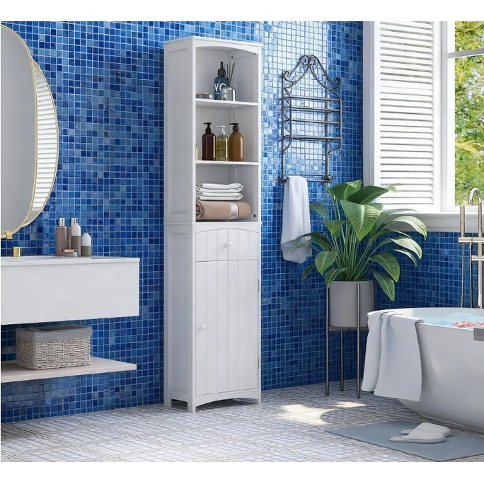 Linen Tower Tall Bathroom Cabinets with Open and Closed Storage Unit