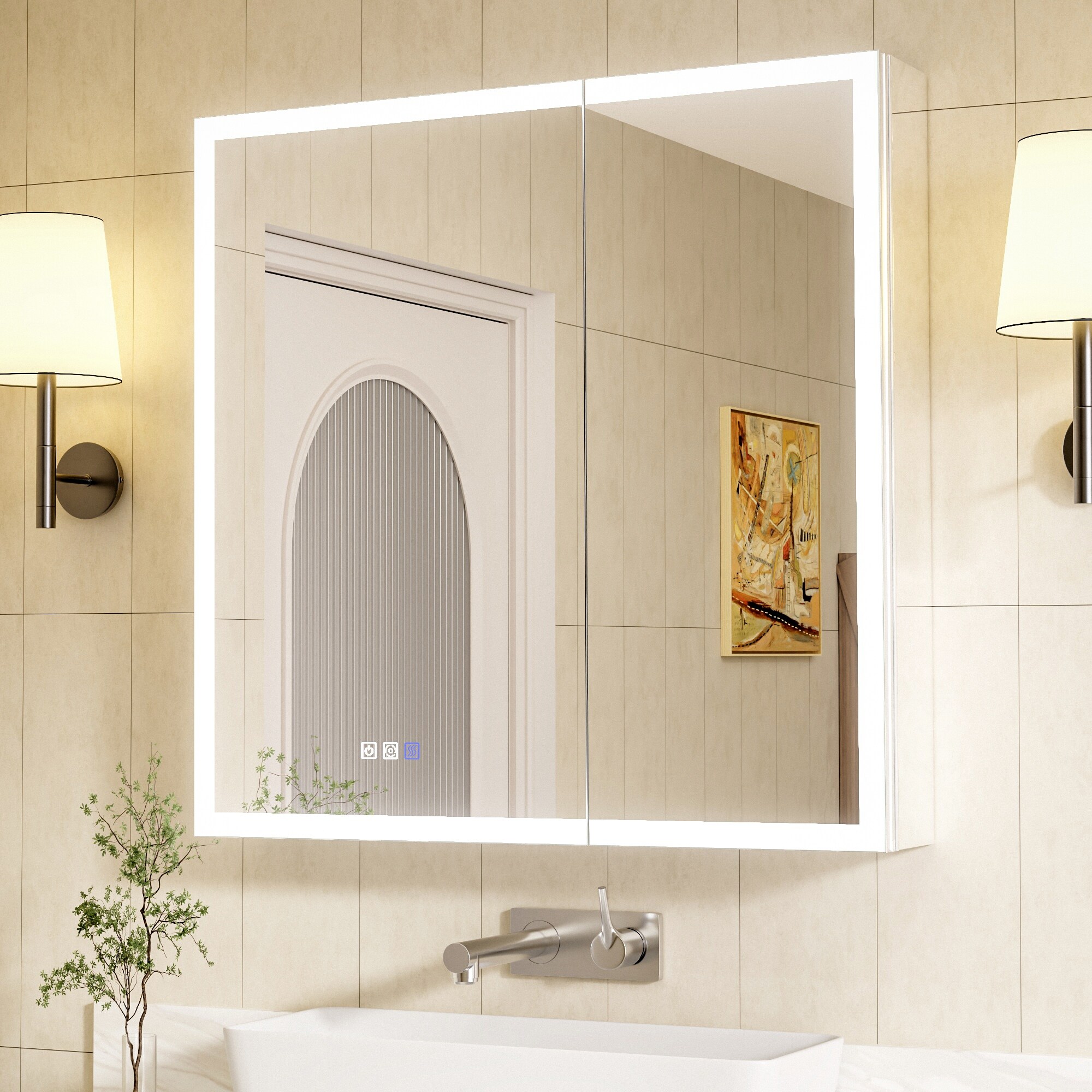Modland LED Lighted Medicine Cabinet with Mirror Bathroom Mirror Cabinet with Lights Anti-Fog