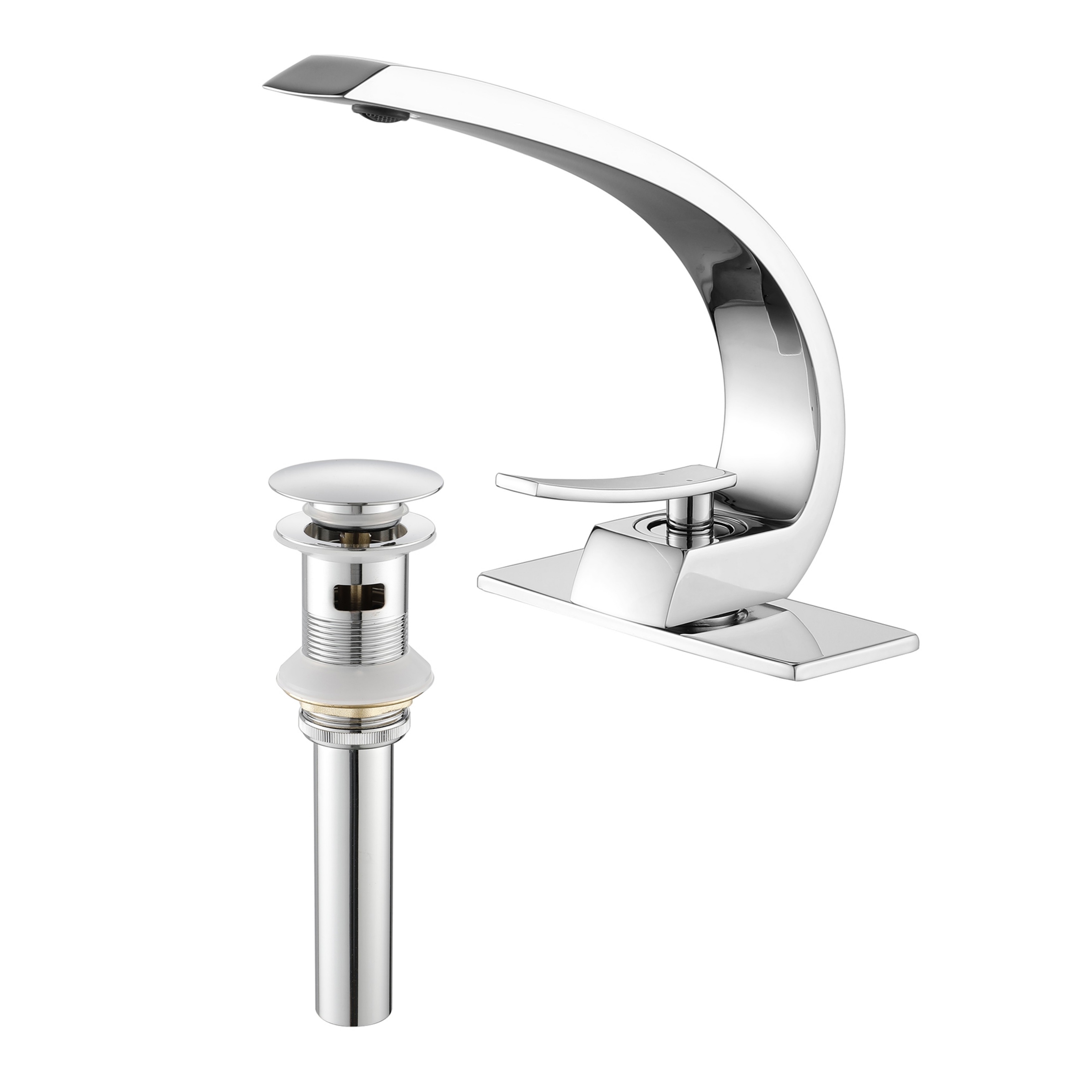 Modland C-Shaped Single Hole Bathroom Faucet, 500K Cycle CUPC Certified, 6-Inch Cover Plate, Black / Gold / Nickel / Chrome
