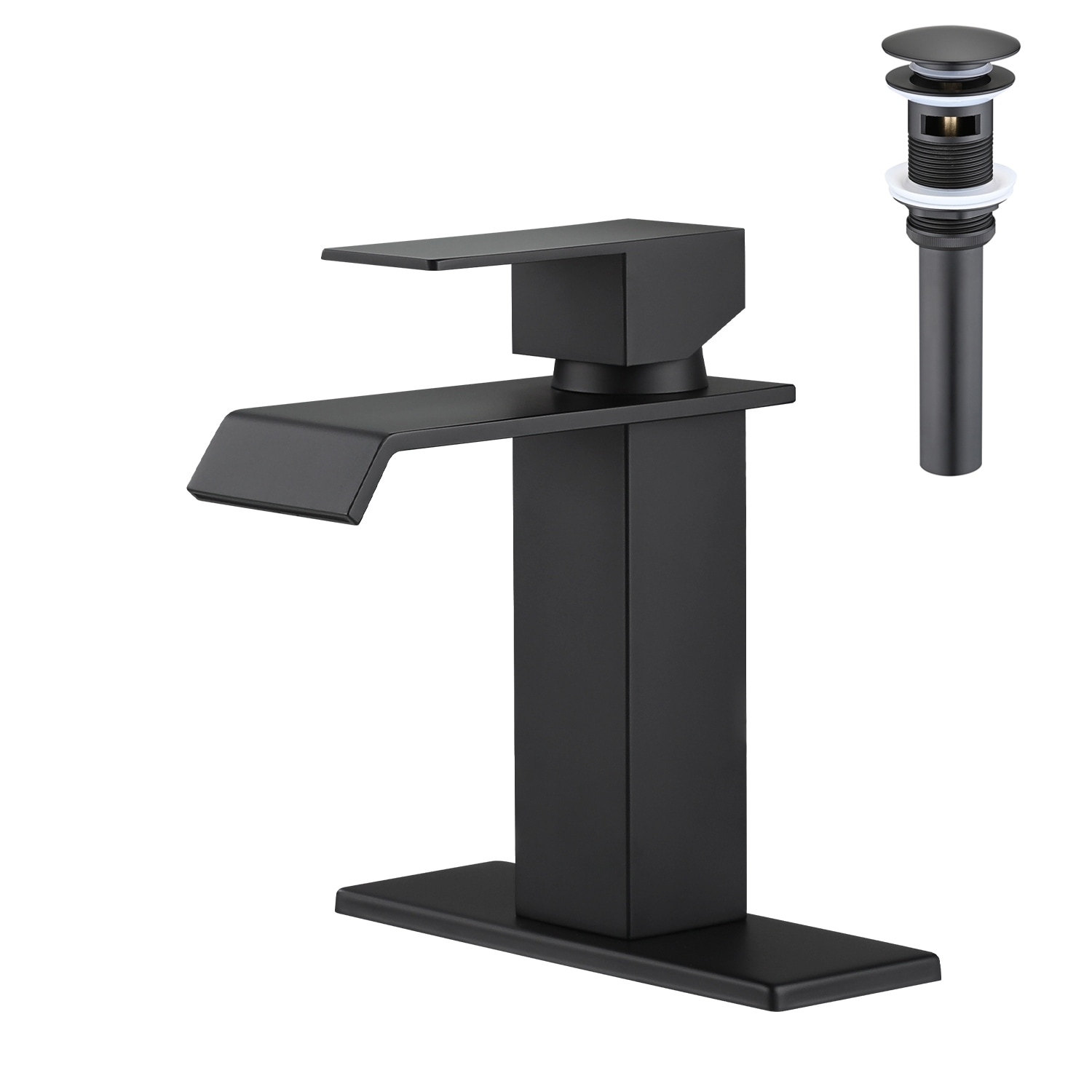 Waterfall Spout Bathroom Sink Single Handle Faucet with Pop-Up Drain (No Overflow)