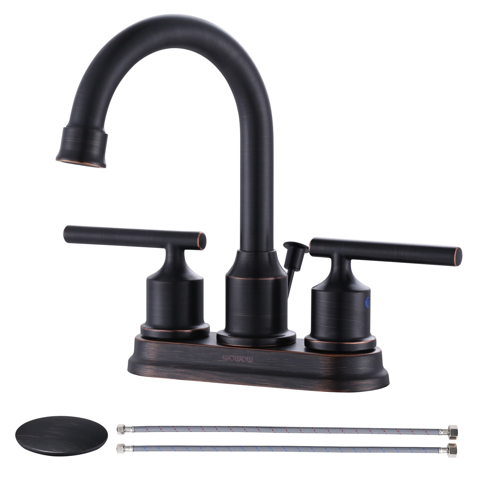 WOWOW 4 in. Centerset Double Handle High Arc Bathroom Sink Faucet
