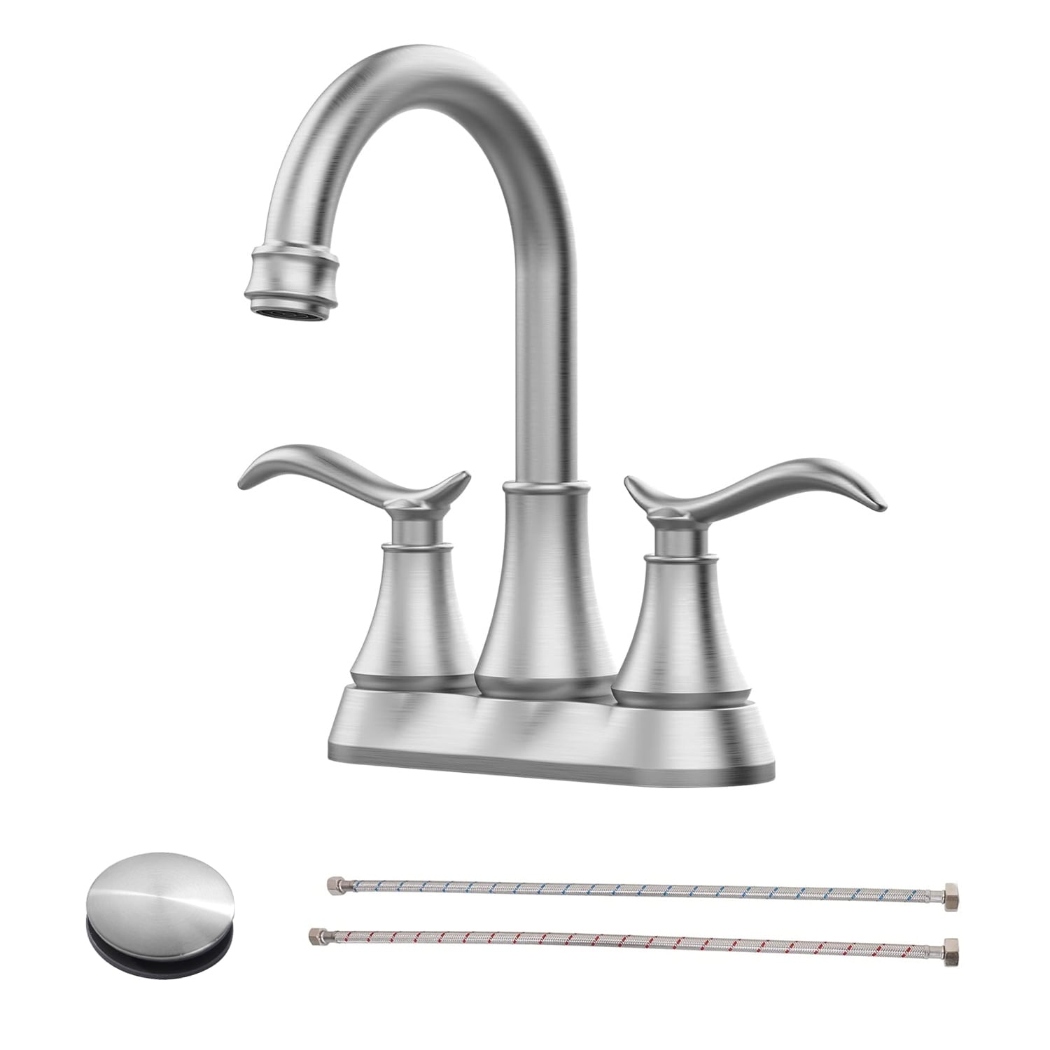 Topcraft Dual-Handle Stainless Steel Bathroom Faucet, Wide-Spout Lavatory Faucet with Pop-Up Drain
