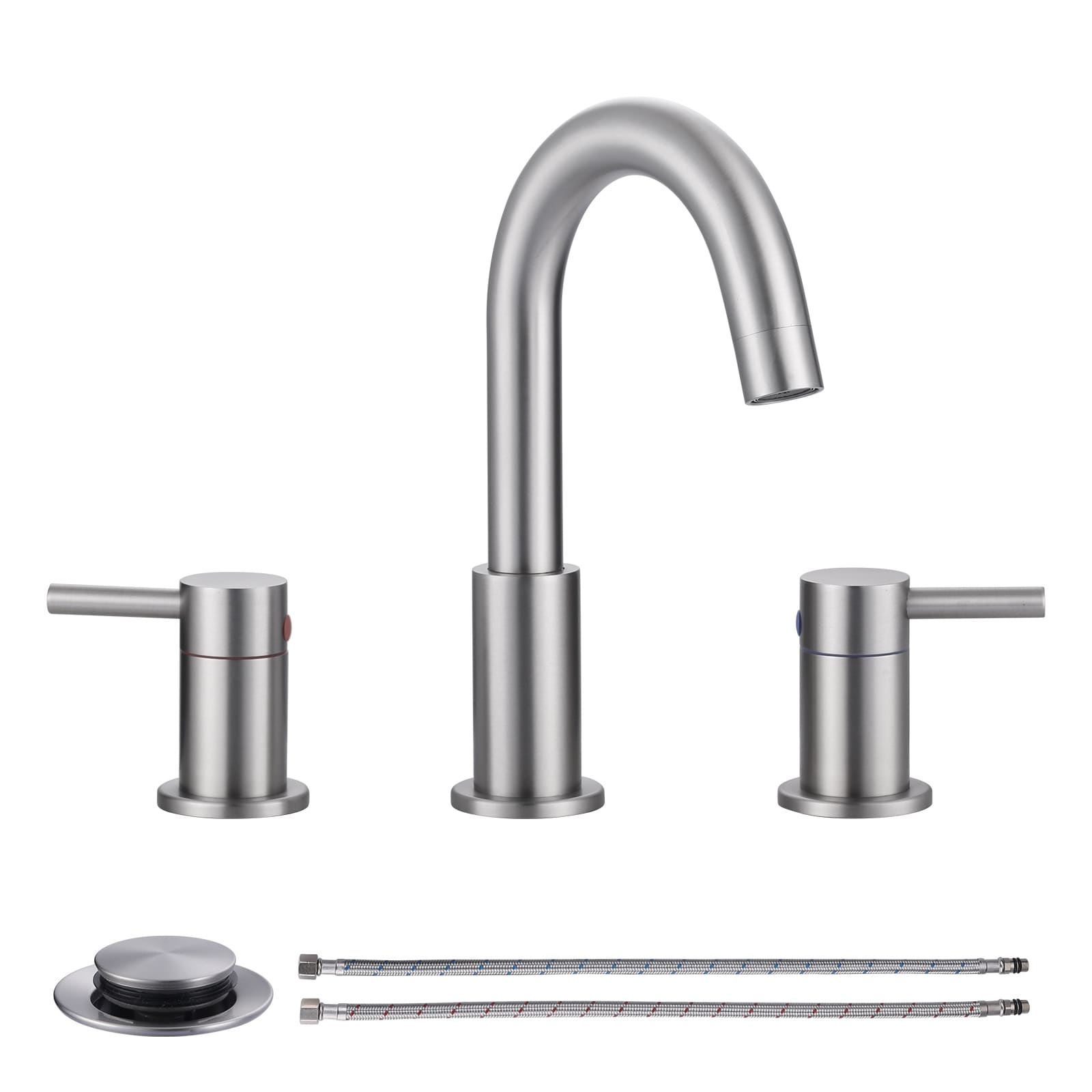 Topcraft Dual-Handle Stainless Steel Bathroom Faucet, Wide-Spout Lavatory Faucet with Pop-Up Drain