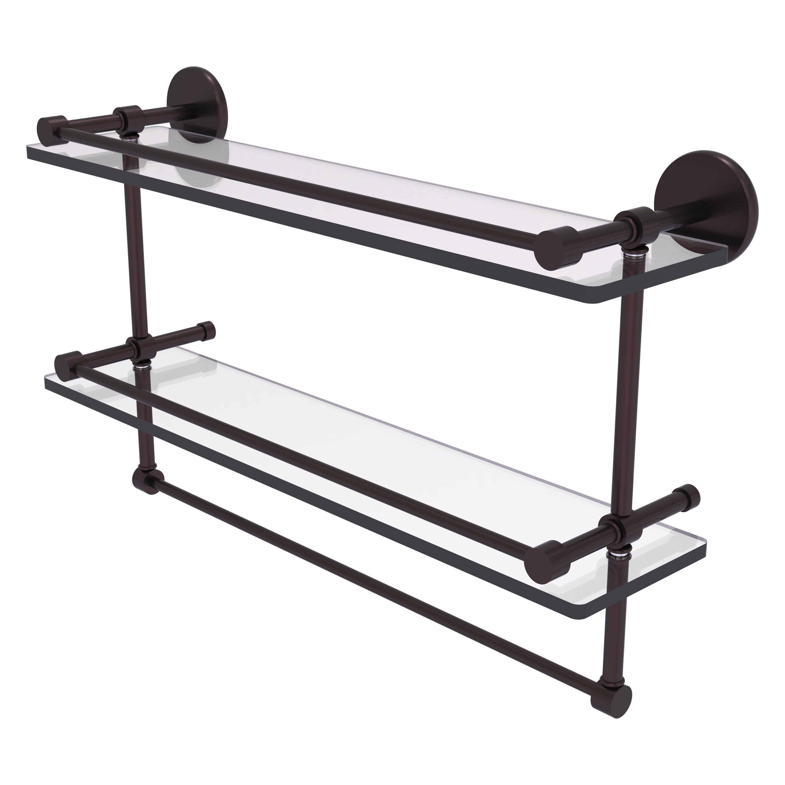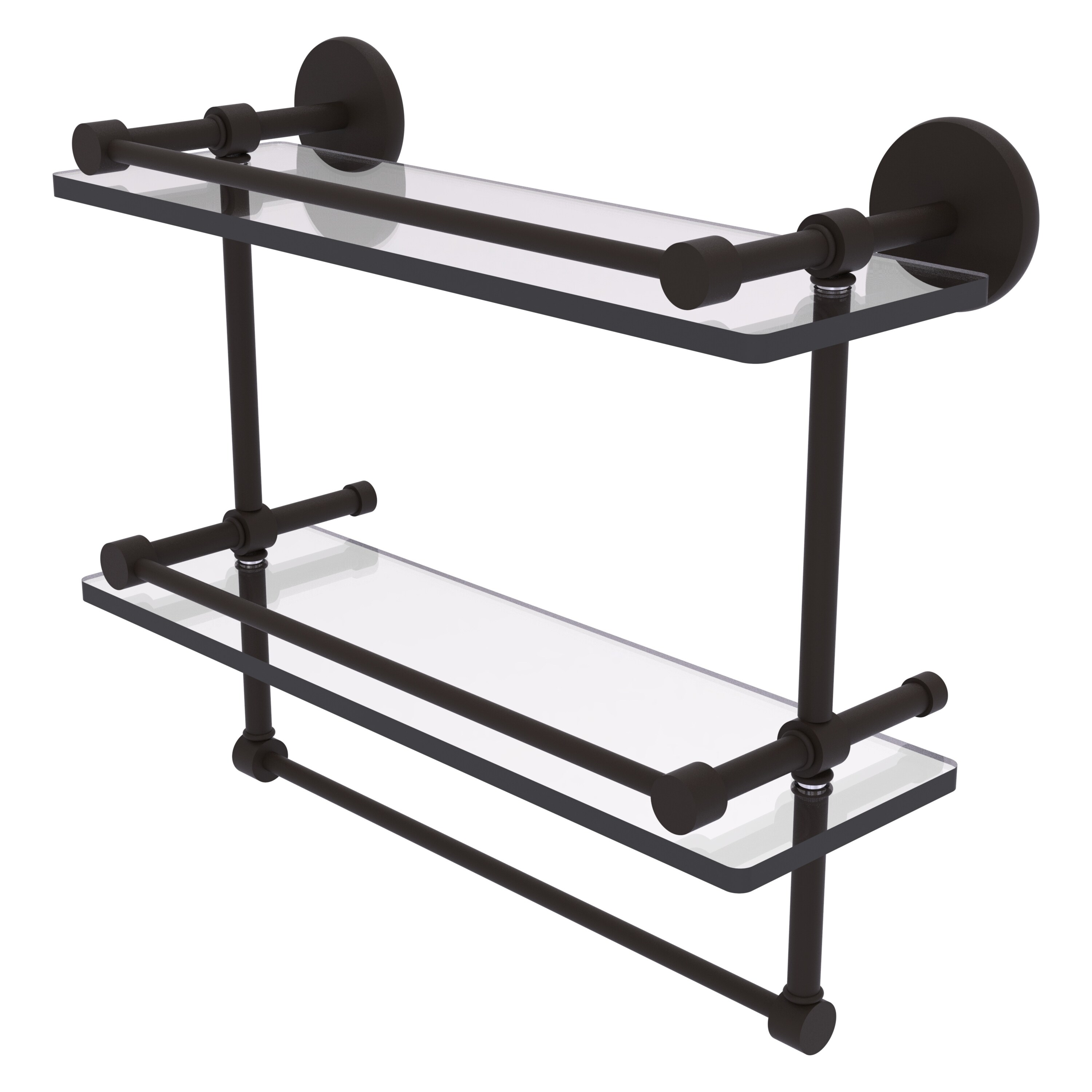 Allied Brass 16 Inch Gallery Double Glass Shelf with Towel Bar