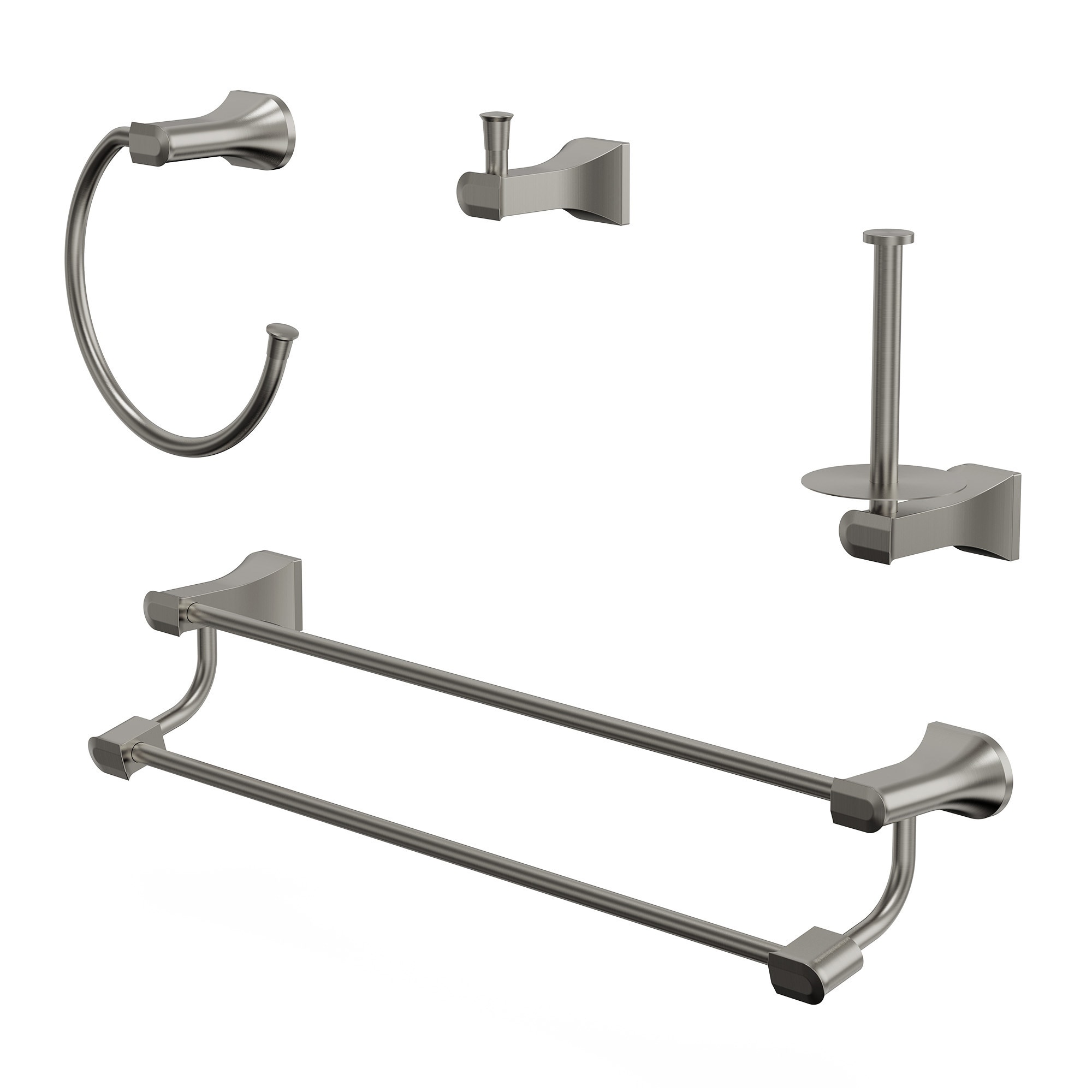 GRANDJOY 4-Piece Stainless Steel Bathroom Hardware Set with Wall Mount Double Towel Bar