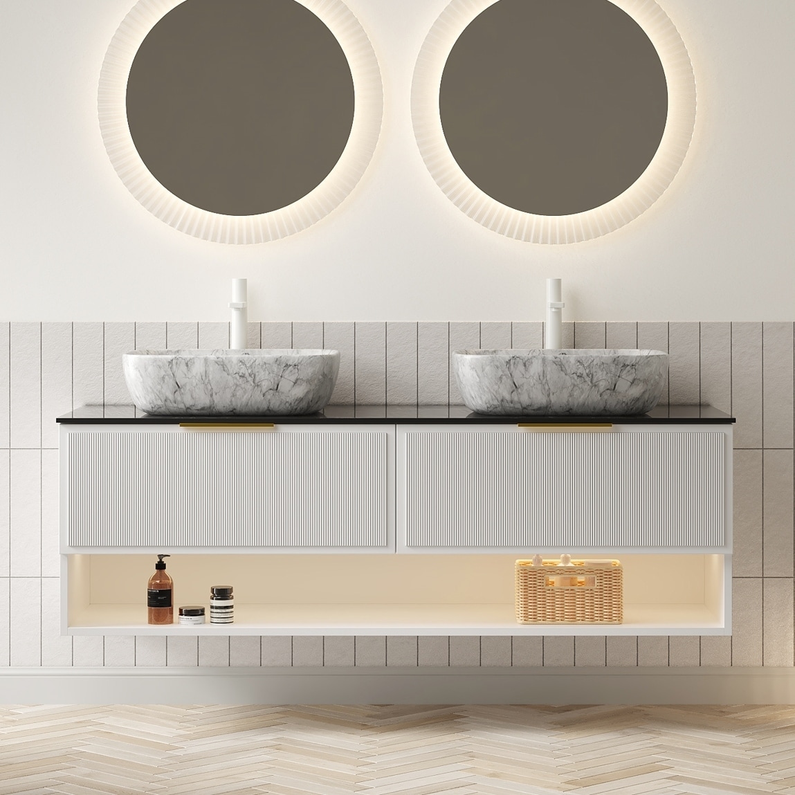 48" Bathroom Vanity With Sink, Floating Storage Cabinet,Sensor Light,Ceramic Vessel Basin&Black Sintered Stone Top