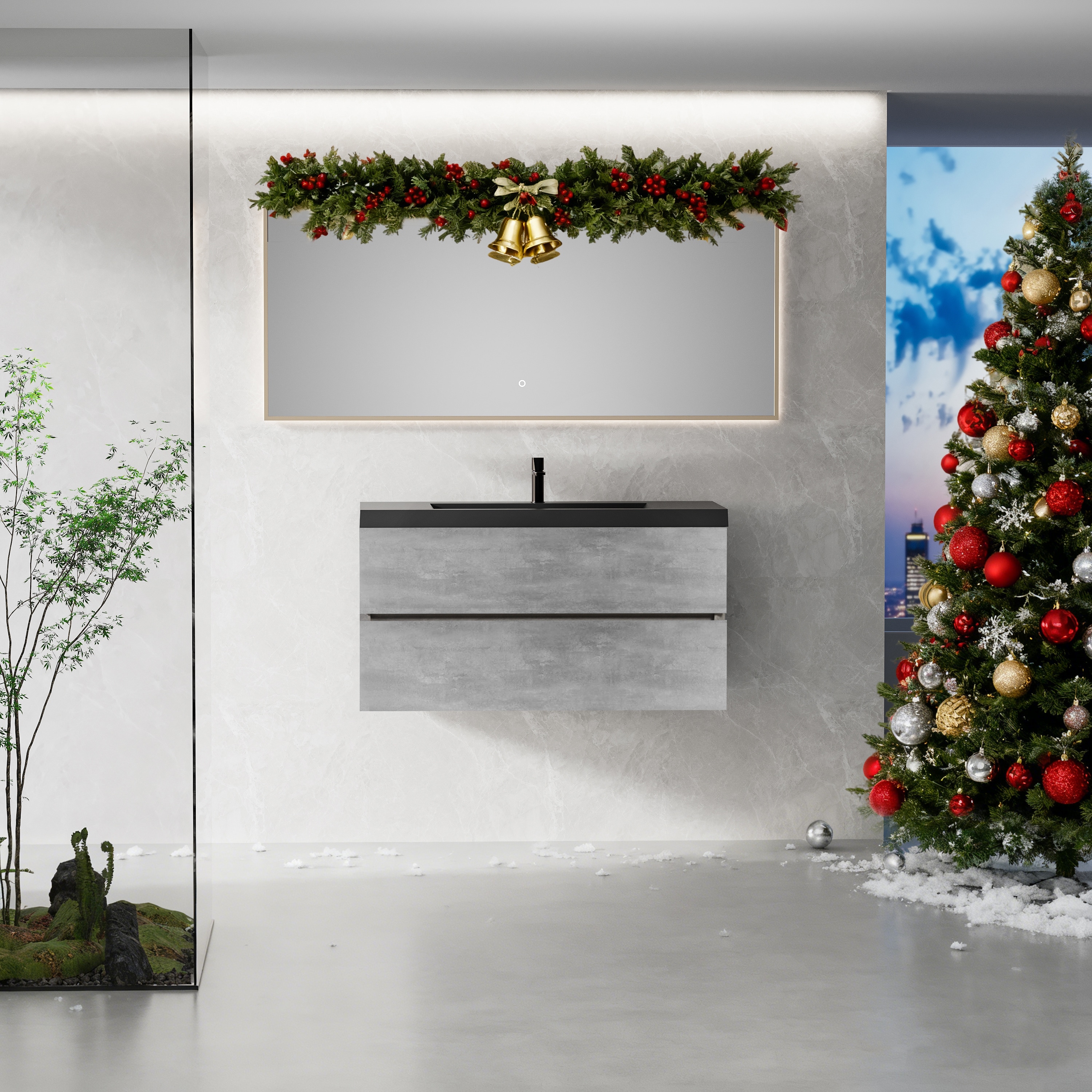 KISRAIS 48" Wide Bathroom Vanity with Ceramic Sink