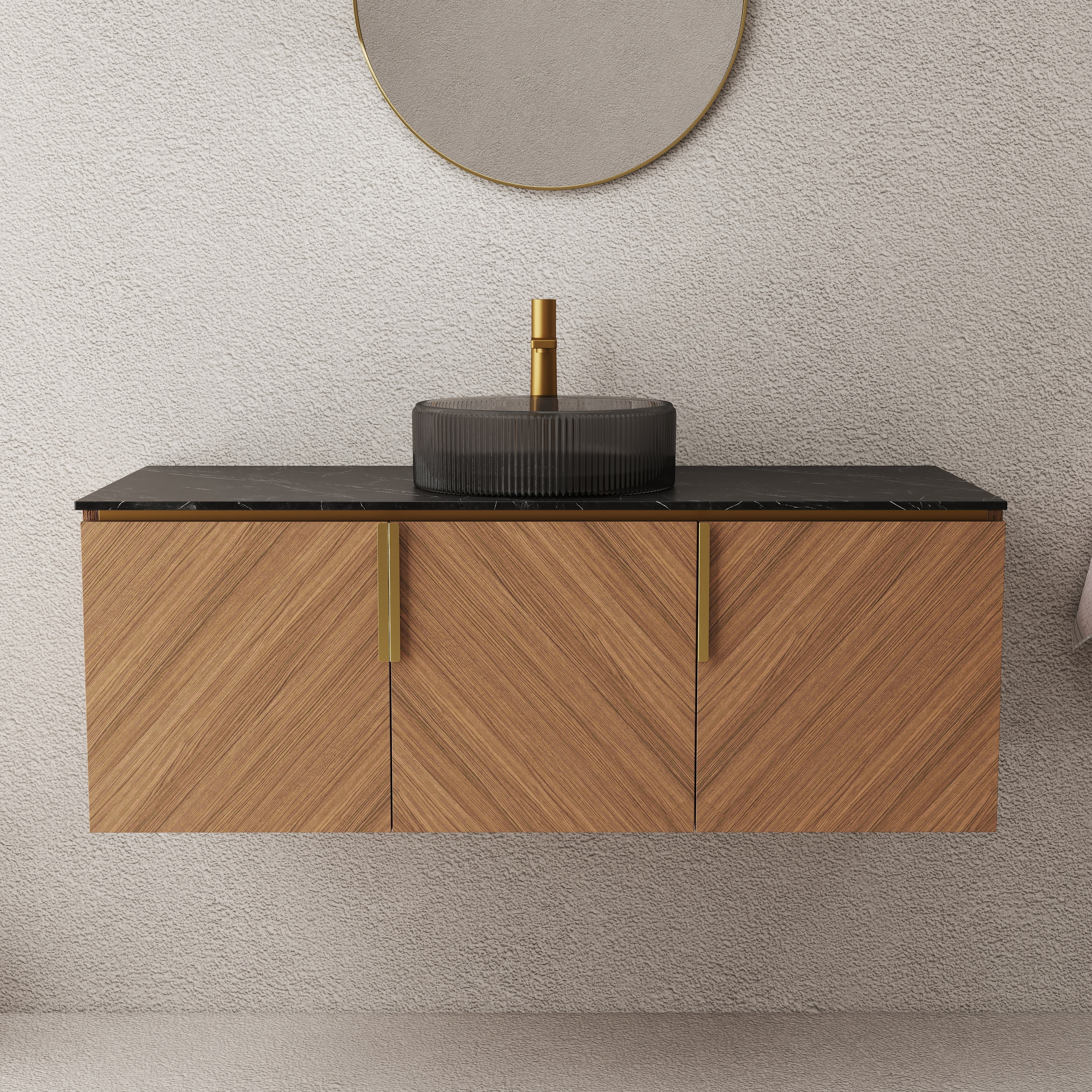 48" Bathroom Vanity & Sink, Modern Wall-Mounted Plywood Bathroom Storage Cabinet with 3 Doors, Black Sintered Stone Countertop