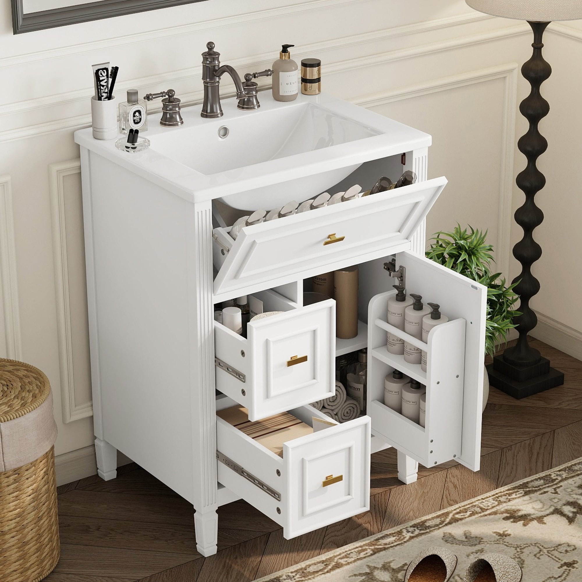 24" Bathroom Vanity with Ceramic Sink and Smart Storage, Waterproof