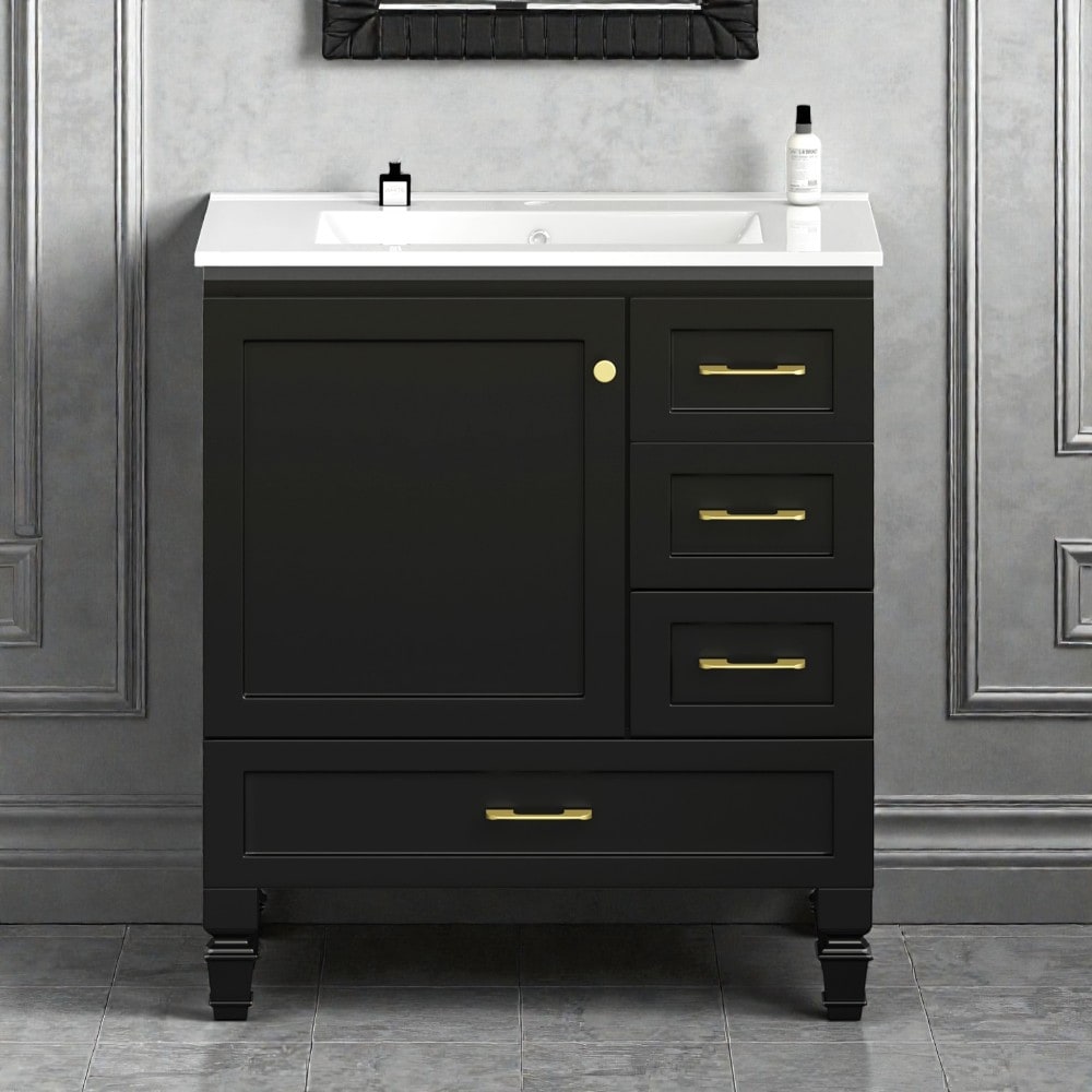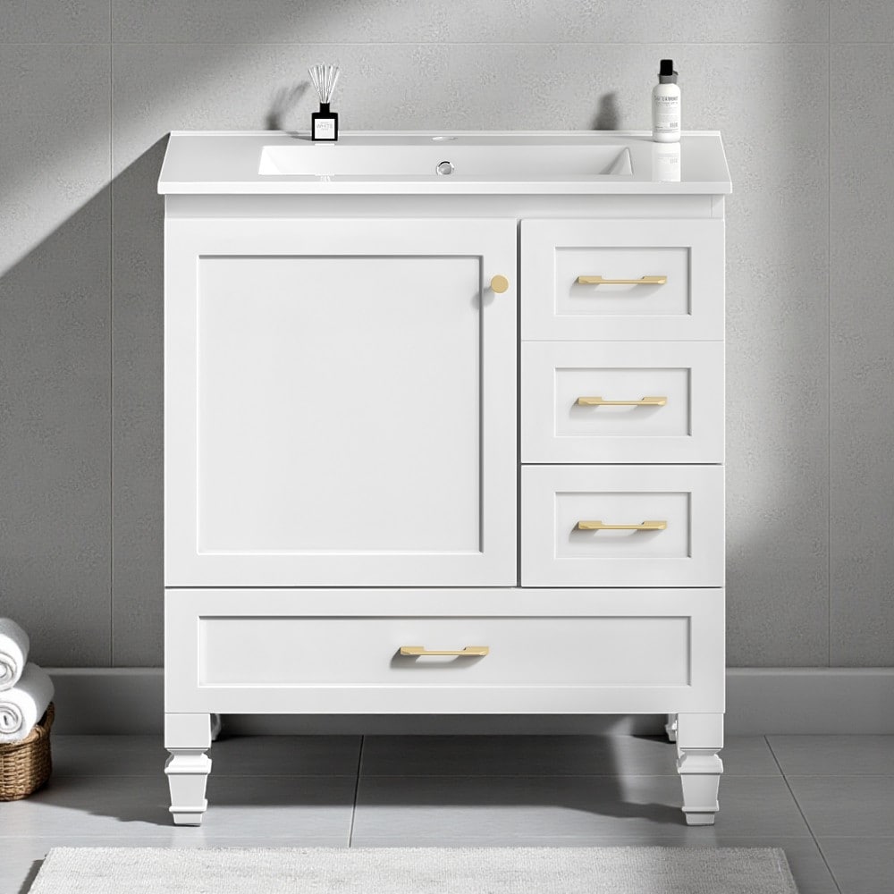 30" Bathroom Vanity Cabinet with Soft-Close Door & 3 Drawers, MDF Storage Vanity for Modern & Transitional Bathrooms