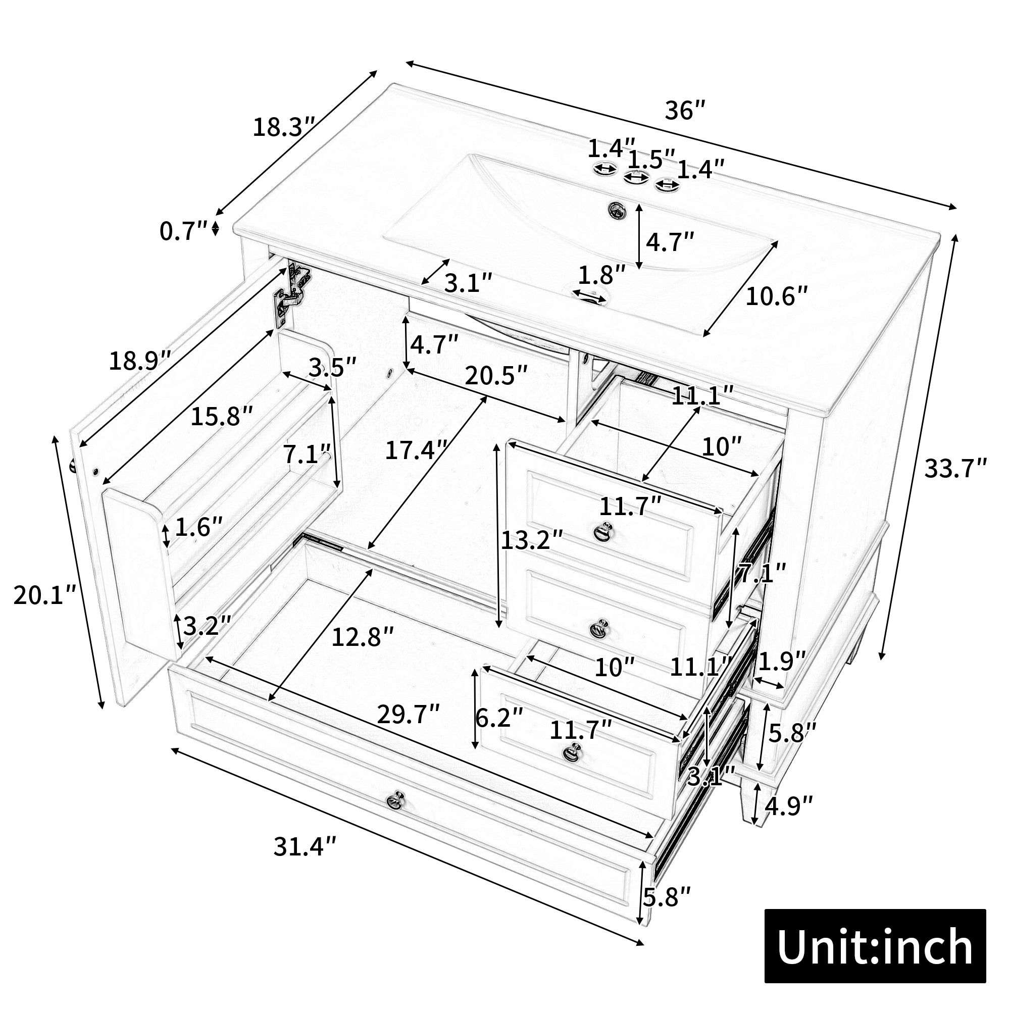 36 Inch Bathroom Vanity with Ceramic Sink