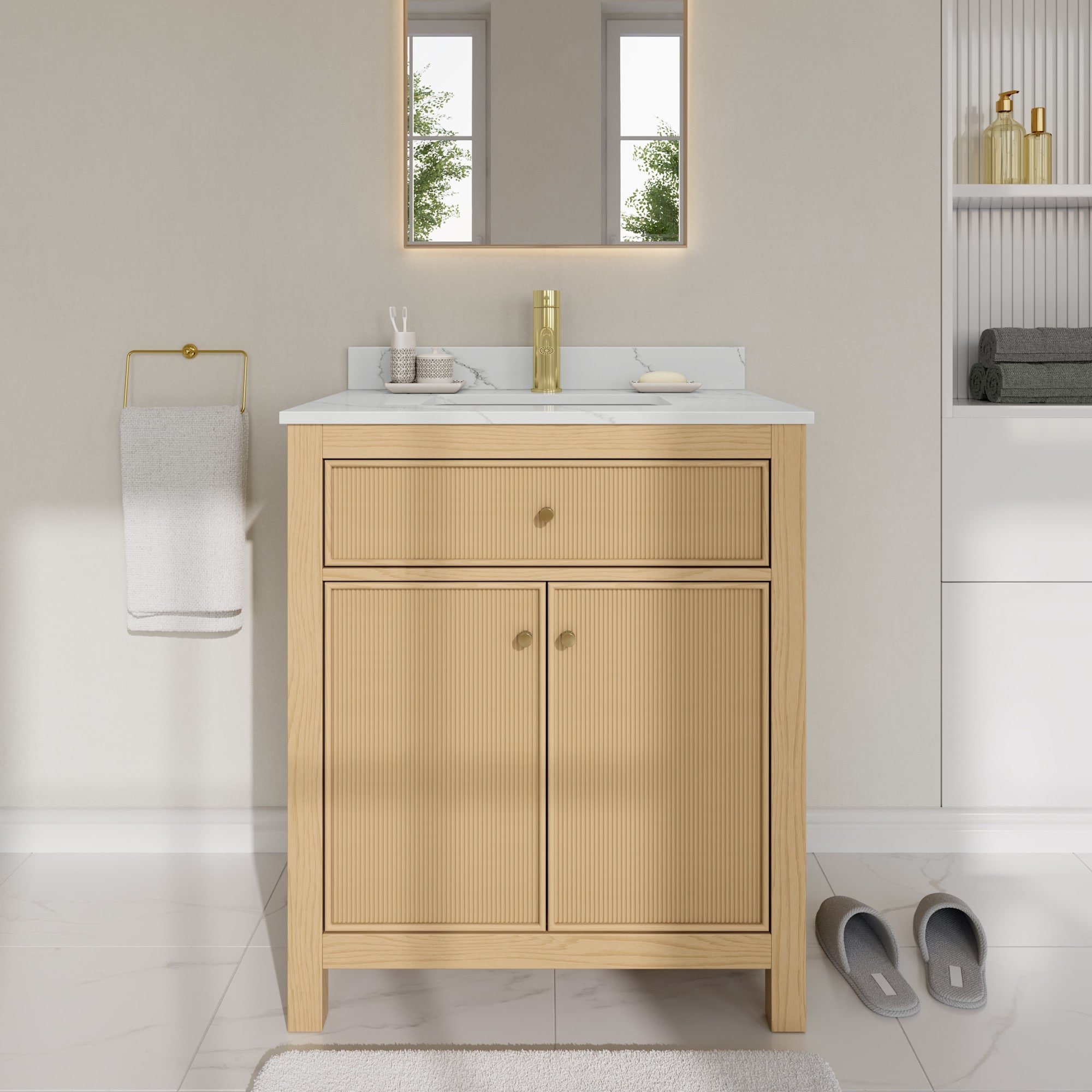 Willow Collections 60 x 22 Sonoma White Oak Wood Single Sink Bathroom Vanity with Quartz or Marble Countertop