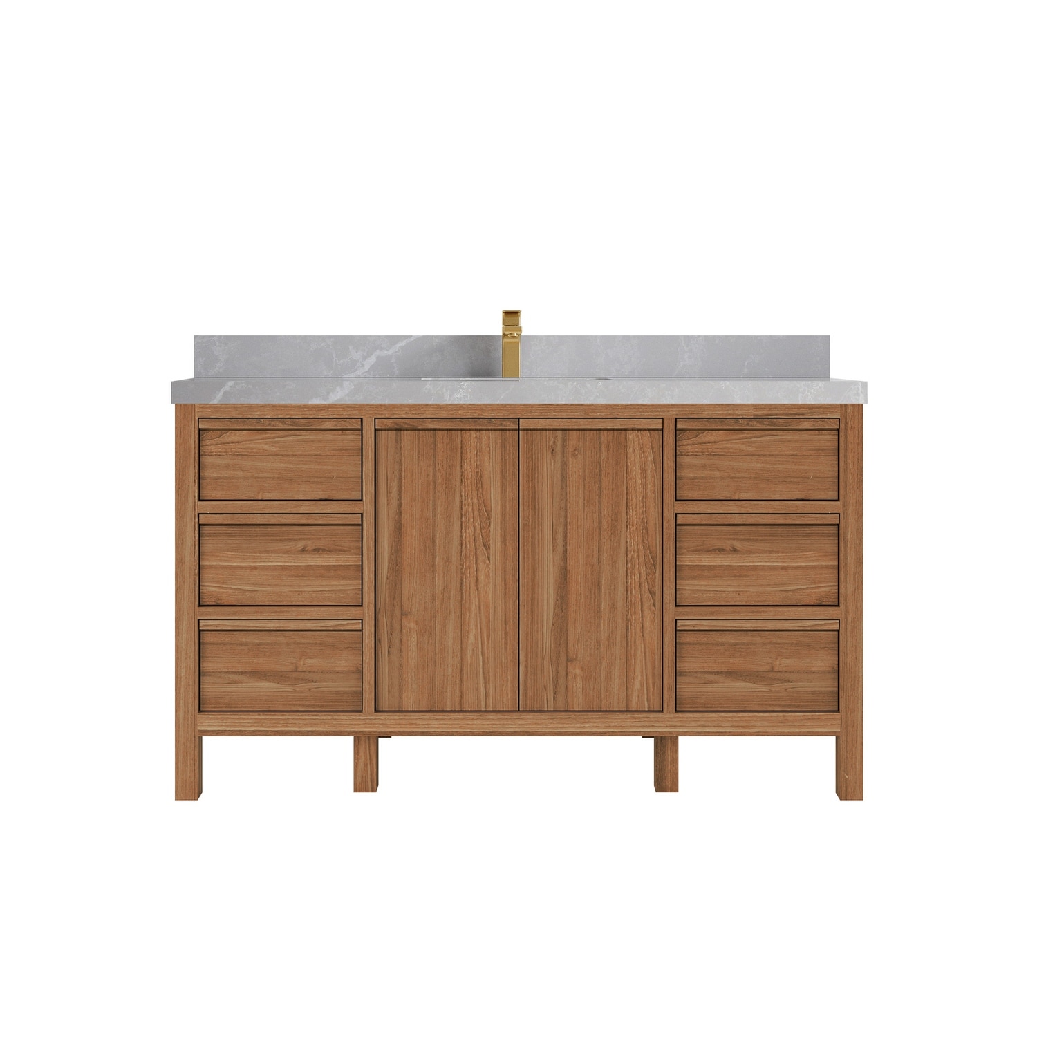 Willow Collections 60 in. W x 22 in. D Elizabeth Solid Teak Wood Single Bowl Sink Bathroom Vanity with Countertop