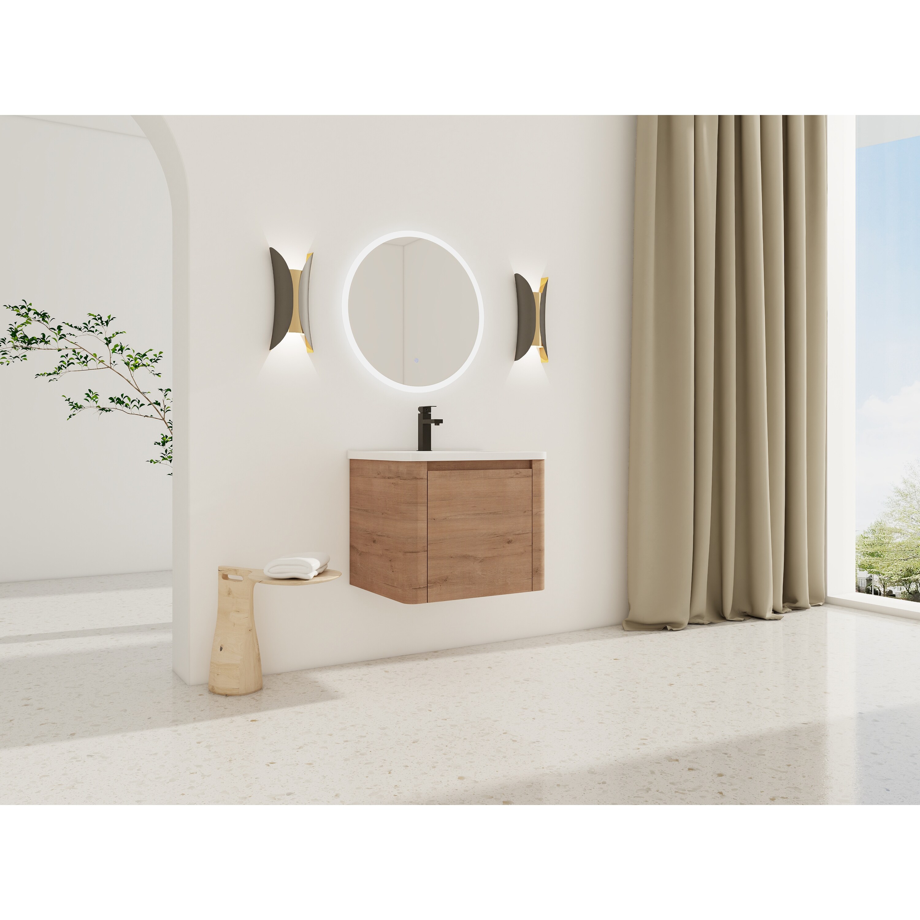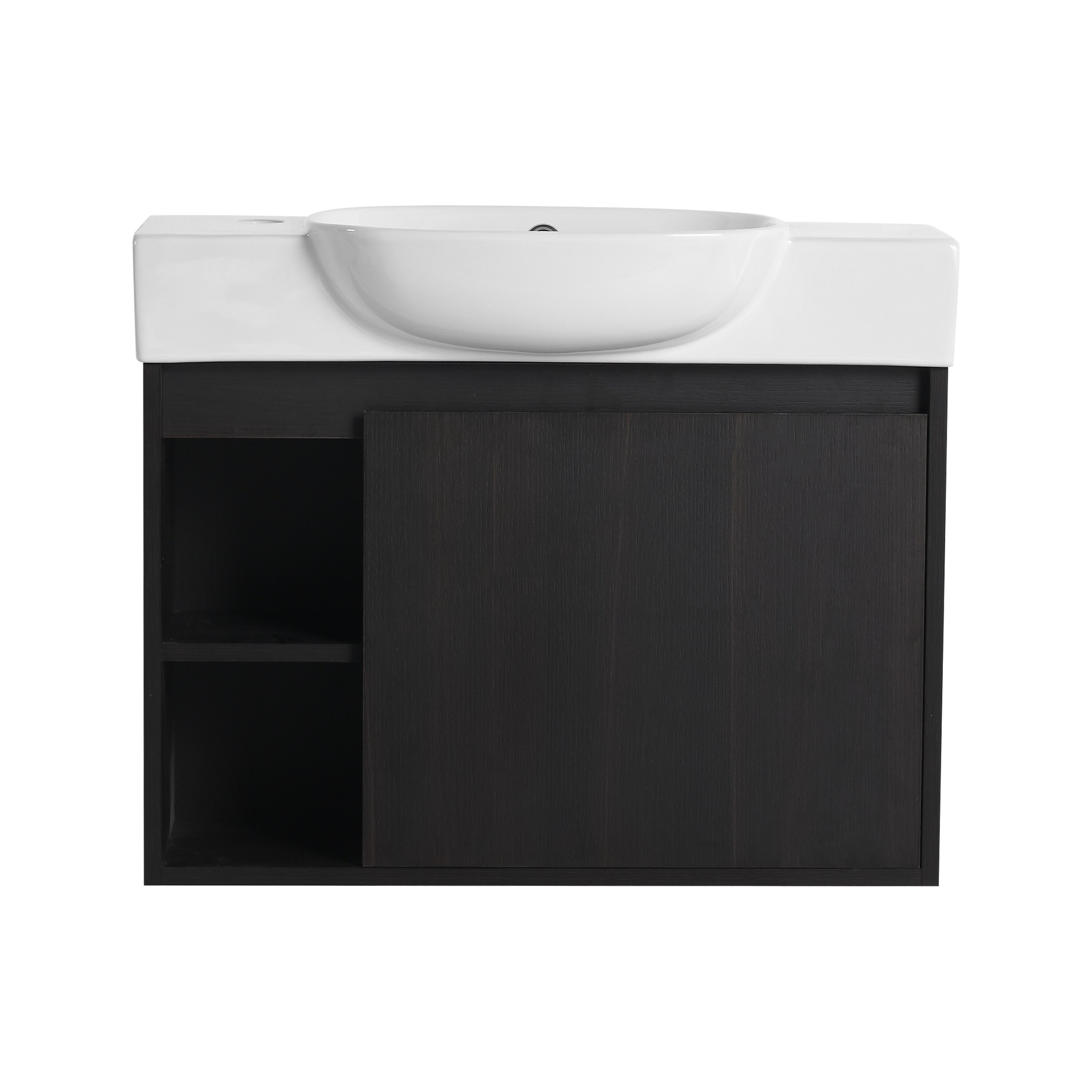 Wall-Mounted Bathroom Vanity with White Ceramic Sink and Soft-Close Door