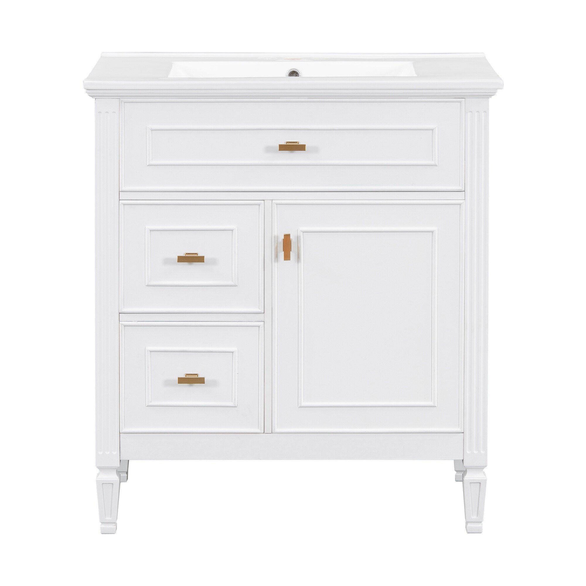 30" Bath Vanity with Sink - 3 Drawers, Door Shelf & Soft-Close Mechanism