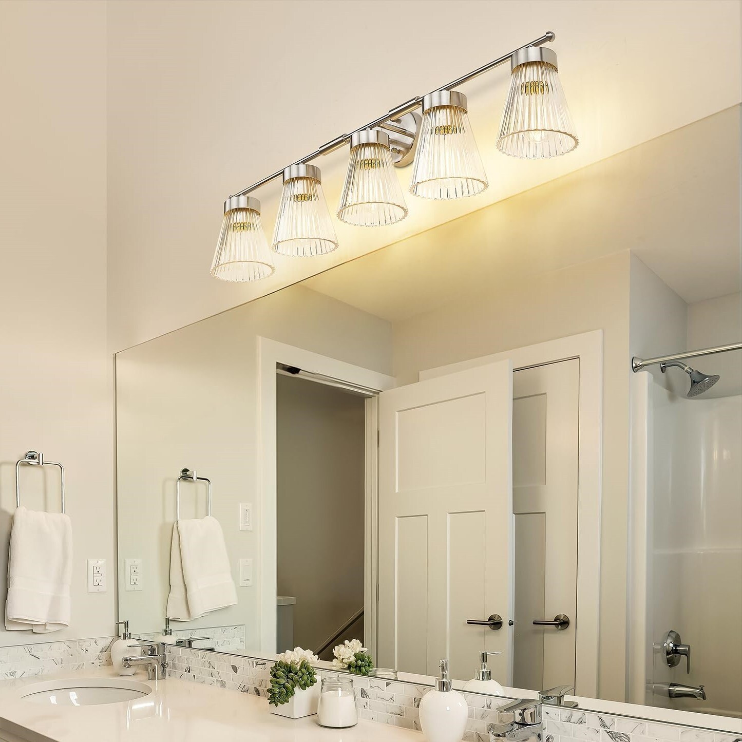 5-Light Bathroom Vanity Light with Striped Glass