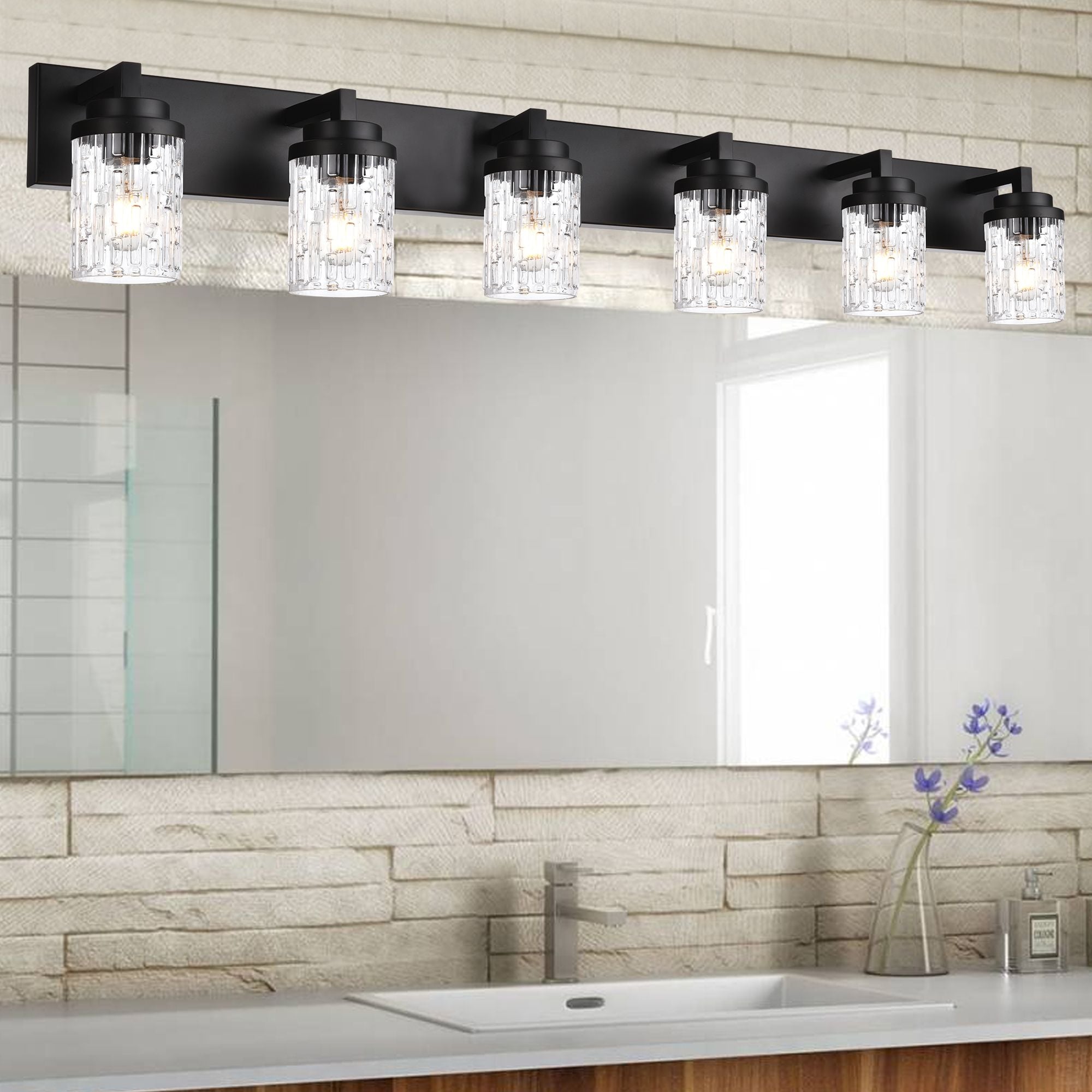 Modern Black 6-Light Vanity Light Industrial Fixture with Clear Grid Glass