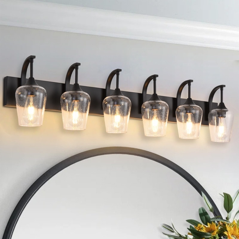 Bathroom Vanity Light,Modern Black Bathroom Light Fixture Over Mirror Wall Sconce Lamp with Seeded Glass Shade