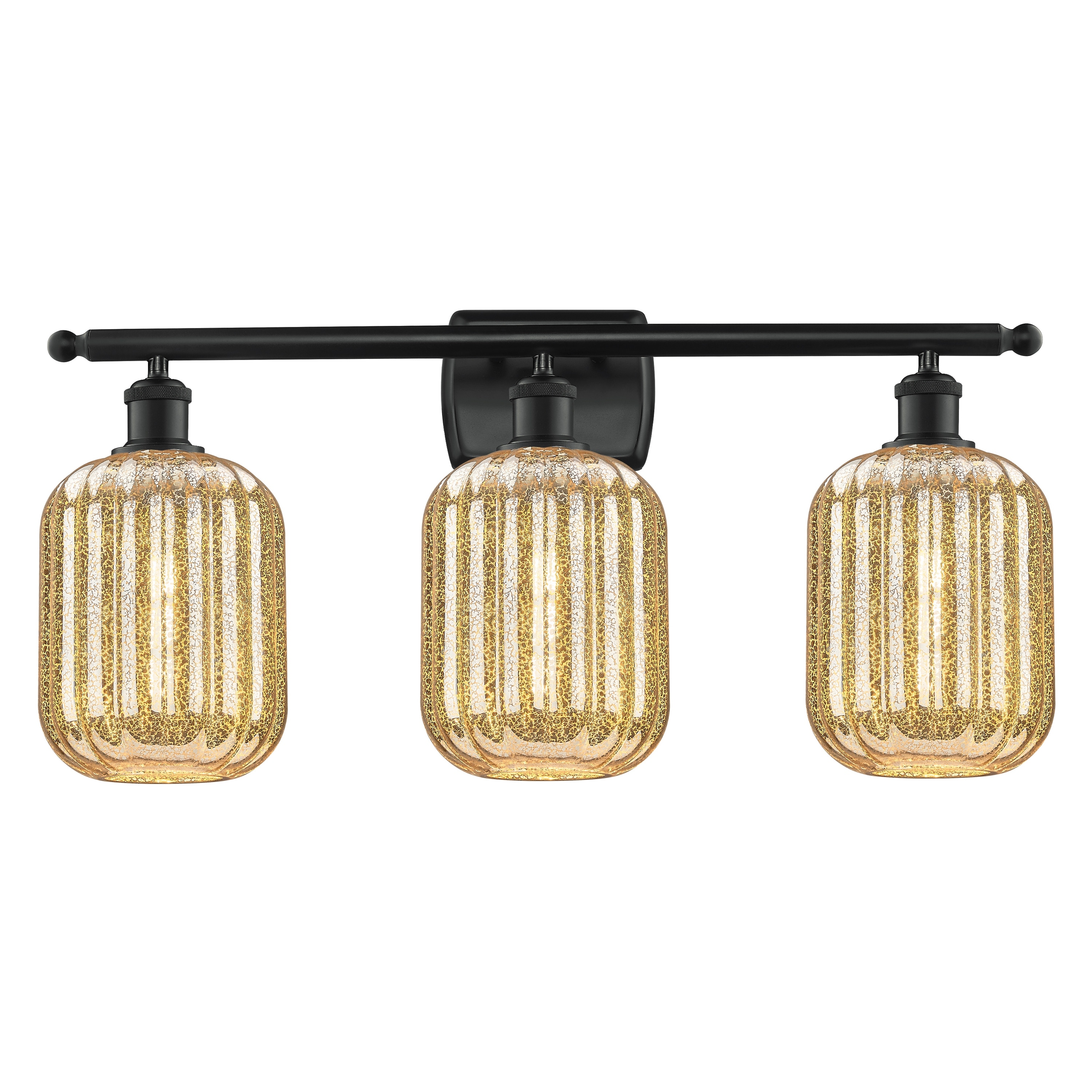 3-light Vanity Light with Matte Black finish and Gold Painting Inside