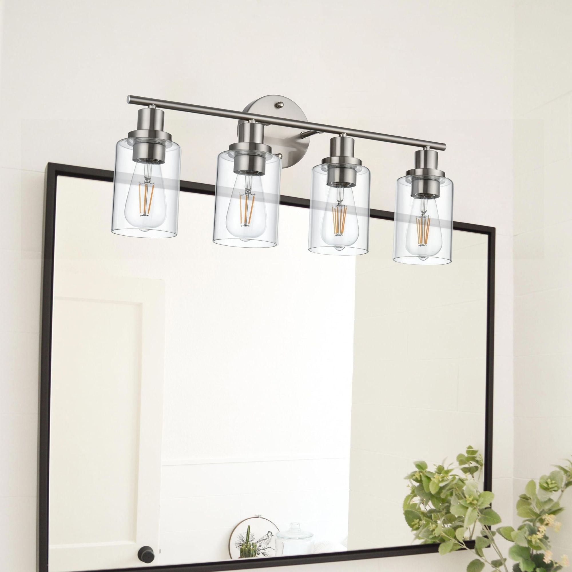 4 Light Bathroom Vanity Lighting with Clear Glass Shade